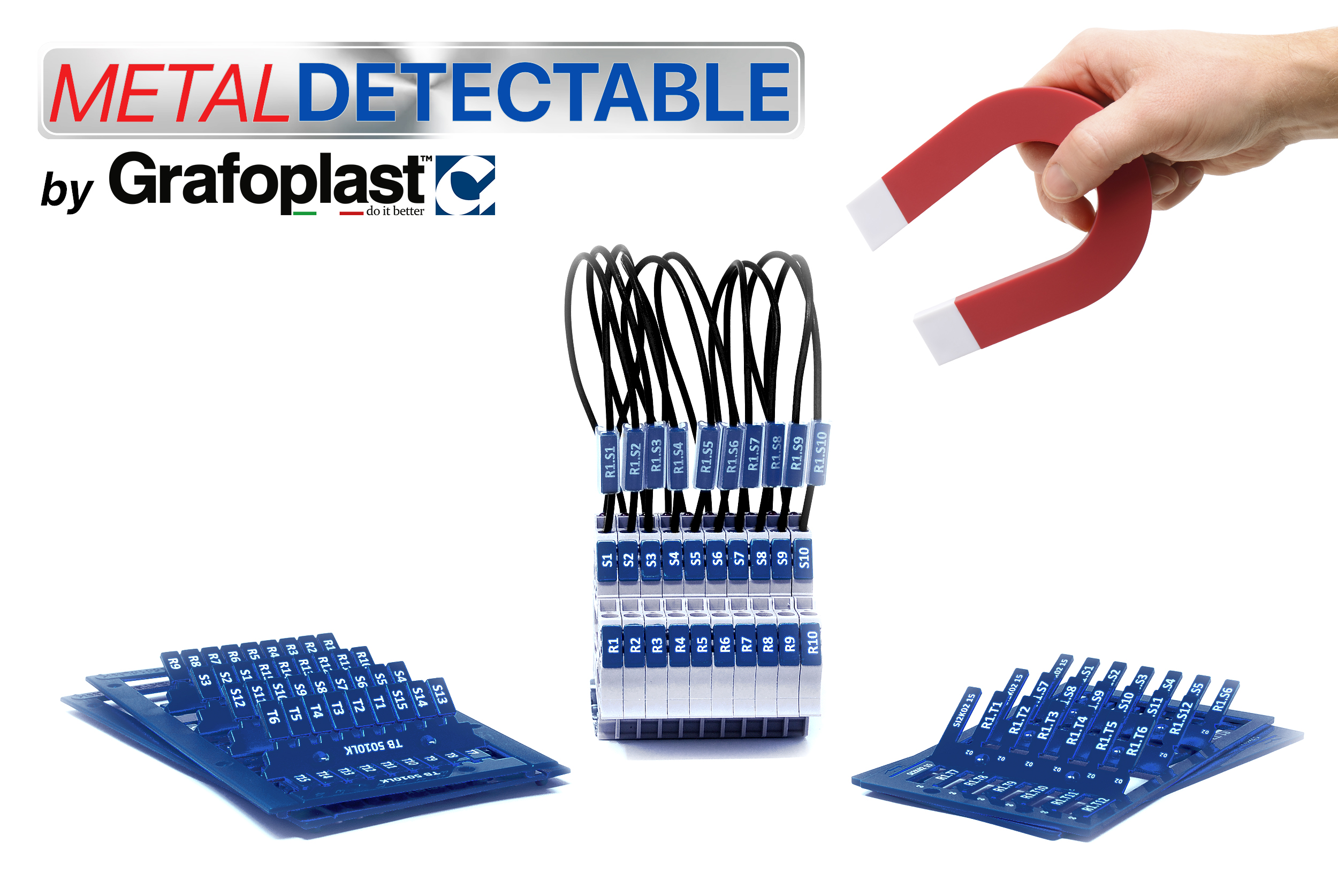 Grafoplast garantisce la massima sicurezza della sua siglatura che rimane sempre chiara, leggibile e resistente nel tempo, ma si arricchisce del fattore “DETECTABLE” rilevabilità ottica più rilevabilità al metal detector.