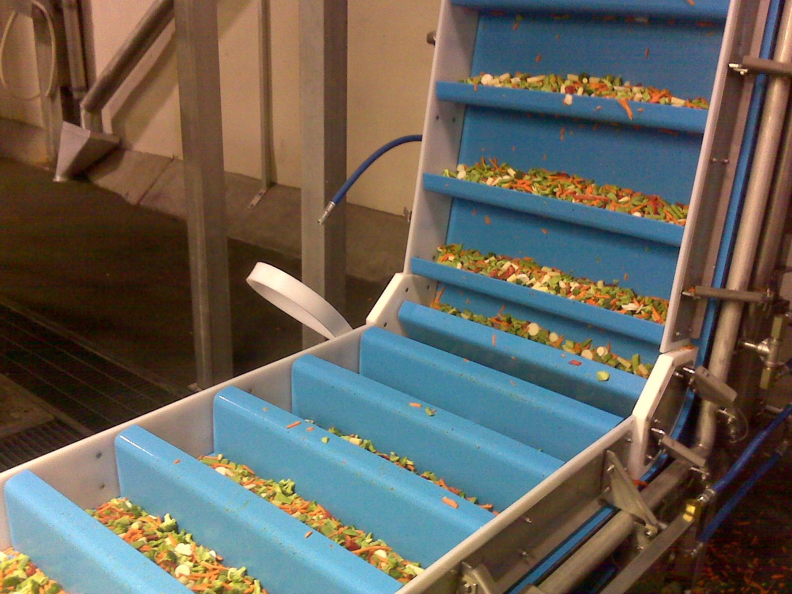 Questo tipo di costruzione è sicuramente sufficiente a portare il prodotto almeno fino all’imballo secondario, ma in realtà, a patto di eseguire una buona segregazione dei reparti, potrebbe essere abbandonato una volta usciti dalla zona bianca. Una volta superata la necessità di avere l’hygenic design o anche solo il washdown, è possibile passare a esecuzioni in ferro verniciato oppure in alluminio anodizzato.