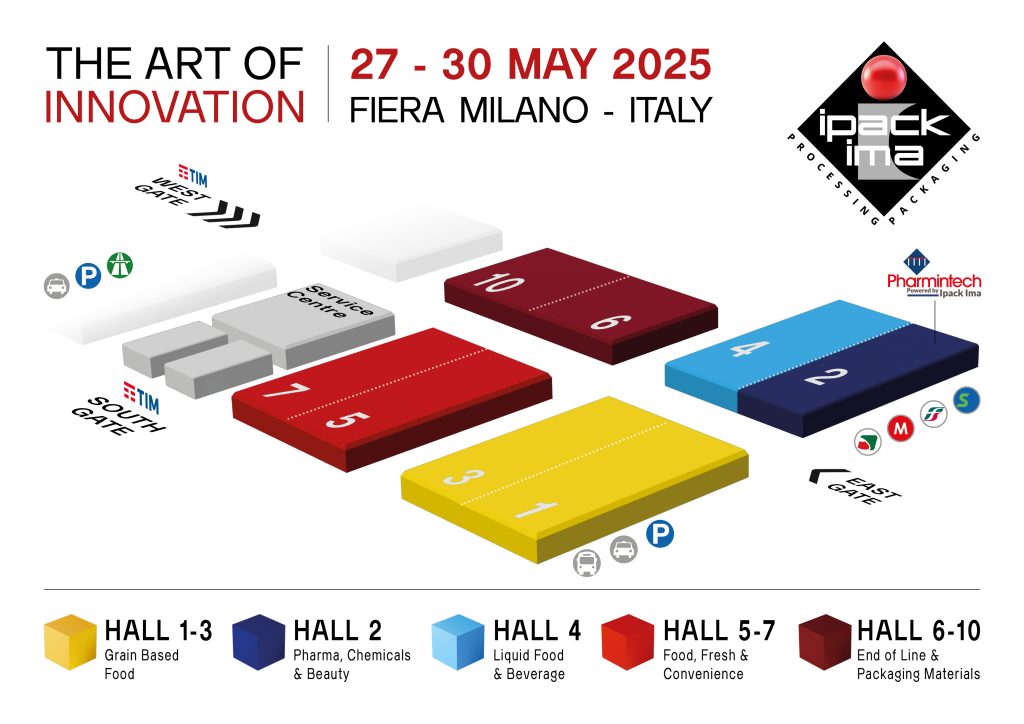 L’offerta espositiva si articolerà dal 27 al 30 maggio 2025 a Fiera Milano-Rho su otto padiglioni strutturati attorno ai principali mercati di riferimento di IPACK-IMA: i padiglioni 1-3 verticali sul grain based food, lo storicosettore di punta della fiera; i padiglioni 5-7 con tecnologie e materiali dedicati al general food; i padiglioni 6-10 con soluzioni end of line, trasversali a tutti i mercati; il padiglione 4 rivolto al mondo liquid food & beverage; infine il padiglione 2 dedicato al non food e rivolto alle industrie Life Science.