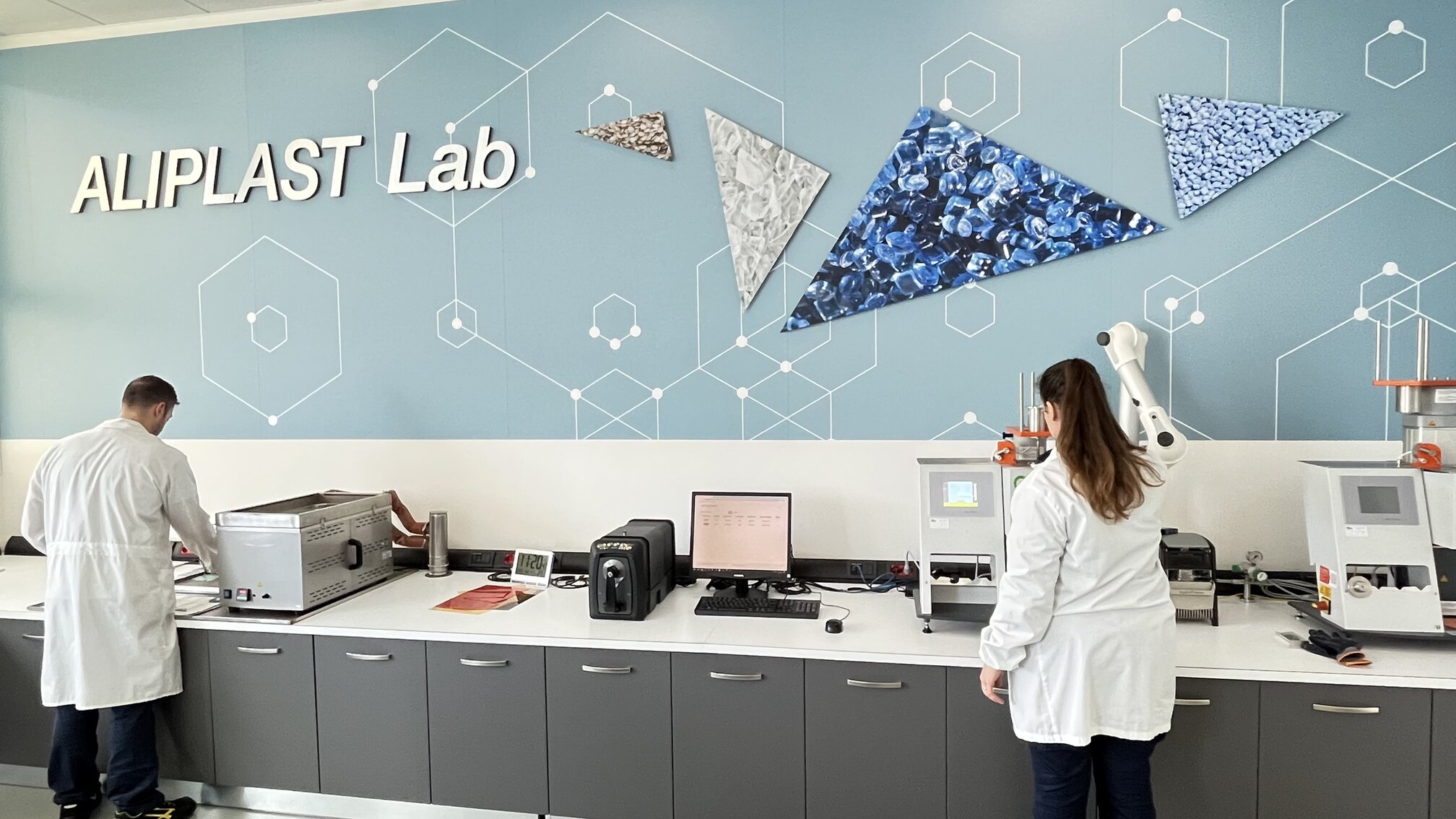 L’Aliplast Lab, unico nel settore dei polimeri riciclati in Italia, è stato concepito proprio come lo spazio ideale per la co-progettazione. In primis perché le nuove strutture ampliano in maniera sensibile lo spettro dei test e delle attività di sviluppo che l’Azienda può realizzare internamente. In secondo luogo, perché è dotato di tecnologie in grado di accelerare sensibilmente i tempi di test e prototipazione per arrivare alla produzione in serie. Dunque, con un risparmio sensibile sui costi e un migliore time to market.
