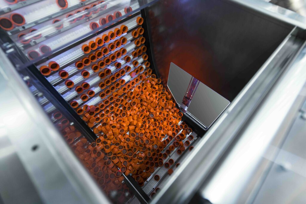 Cap orientation and feeding systems ensure that each closure reaches the capping station in the correct position and under optimal conditions. Upstream, washing, sanitizing and dust or microplastic reduction/removal modules can be integrated to meet the most stringent hygiene standards.