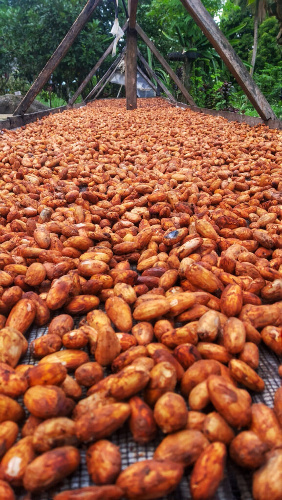 Anche il processo di essiccazione deve essere eseguito con particolare attenzione per garantire che le fave siano adeguatamente preparate per la conservazione e il trasporto senza contaminazioni da muffe, batteri (soprattutto della Salmonella), IPA (Idrocarburi Policiclici Aromatici) e altri contaminanti. In base a quando si è visto per la fermentazione, l’essiccazione deve essere avviata immediatamente dopo il su scritto processo, onde evitare che le fave fermentino eccessivamente con conseguente perdita di aroma di cacao. L’essiccazione alla luce solare diretta e naturale è certamente preferibile, ma a volte, potrebbe essere necessario utilizzare l’essiccazione artificiale come integrazione o addirittura in sostituzione secondo le condizioni e problematiche climatiche e ambientali.