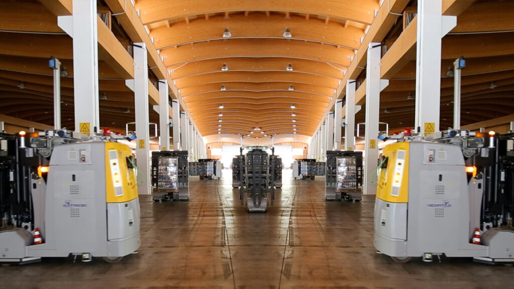 Arriveranno inoltre a 45 entro febbraio 2021 i robot a guida laser incaricati della movimentazione delle merci in stabilimento. Sono carrelli automatizzati che rispondono agli input di un software centrale, in grado di gestire la logistica interna, dallo stoccaggio all’uscita dal magazzino dei pallet. Questi veicoli si muovono in modo completamente autonomo, spostano la merce in magazzino e di lì sono in grado di caricare i pallet di acqua sui camion, distinguendo tipologie di acqua, formati e quantità. Oltre a garantire una precisione superiore al 99,5%, questi veicoli rispettano l’ambiente (funzionano con batterie ricaricabili anziché utilizzare carburante) e, grazie ad un’innovativa tecnologia tutta made in Italy, sviluppata dall’azienda emiliana Elettric 80, aumentano la sicurezza sul lavoro, eliminando incidenti alle persone e danni alle cose.