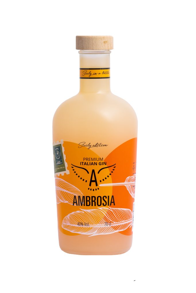 Ambrosia Sicily Edition 70cl, Distilled Gin, deriva da un processo di macerazione di una settimana, dove il blend, una volta distillato, si unisce a scorze di arancio e peperoncino siciliano. Il gusto ottenuto è un dolce piccante, con un retrogusto di peperoncino ad ogni sorso.