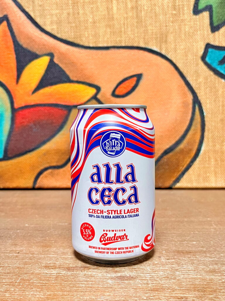 Il nome Alla Ceca significa “in stile ceco” ed è prodotta utilizzando esclusivamente materie prime italiane: orzo dalla Basilicata, luppolo coltivato a pochi metri dal birrificio Baladin in Piemonte e acqua delle Alpi Marittime italiane. La fermentazione utilizza il lievito originale di Budvar, portato in Italia appositamente per questa collaborazione.