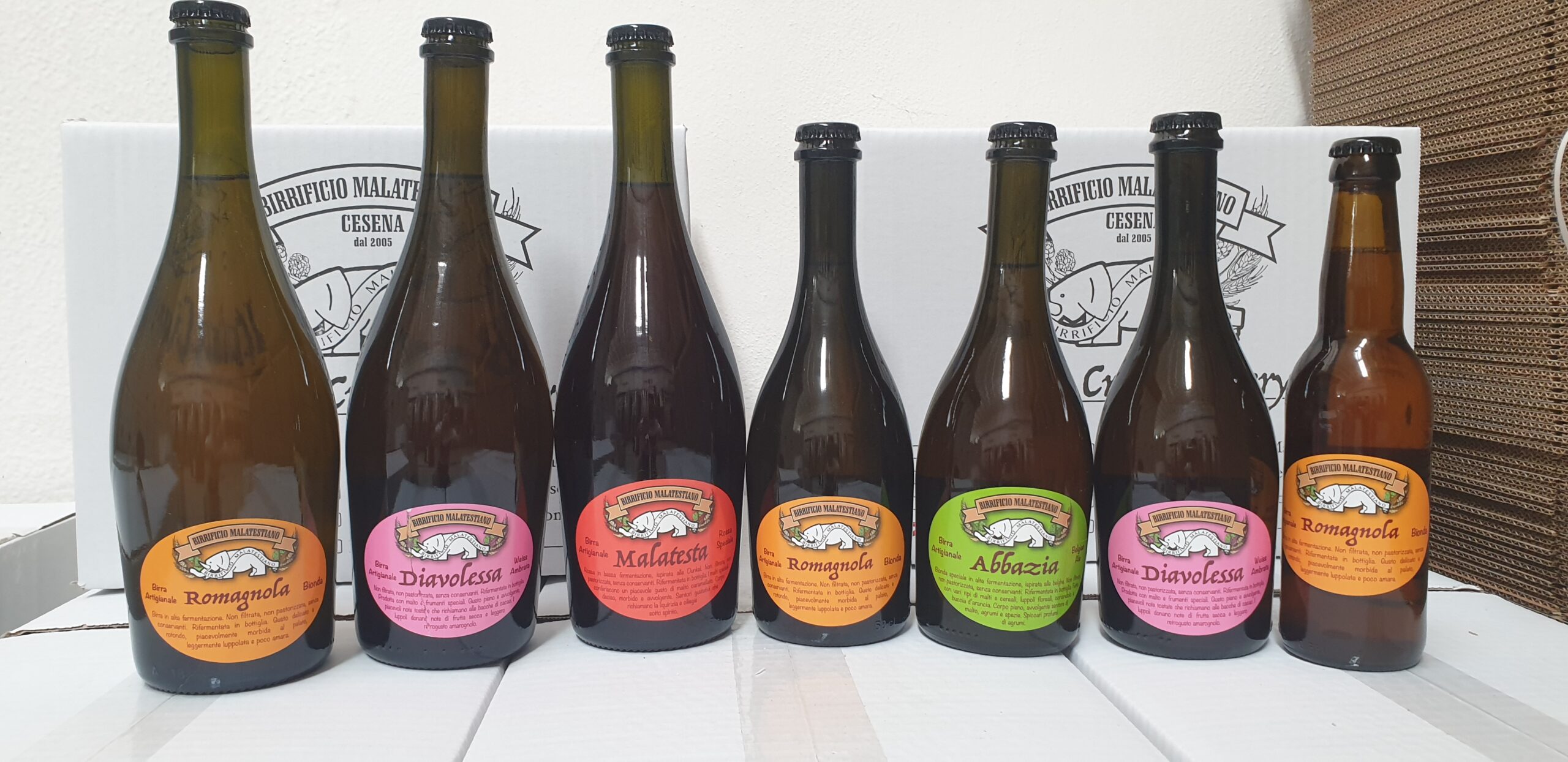 L’idea di una “birreria gastronomica”, ossia di un posto dove produrre birra e fare insieme anche ristorazione al pubblico, viene attorno al 2002. Si informano bene, studiano, si preparano con spazi e attrezzature: nel 2005 aprono il loro brewpub, “Mastrobirraio”, in pieno centro a Cesena. Poi però la produzione di birra cresce e necessita di nuovi spazi: nel 2014 inaugura la nuova sede produttiva poco fuori città. L’anno seguente, nel 2015, oltre ai fusti introducono le bottiglie per ampliare le capacità di vendita. E nel 2017 è anche tempo di un nuovo nome commerciale, appunto “Birrificio Malatestiano”, per espandersi sempre di più con il proprio marchio.