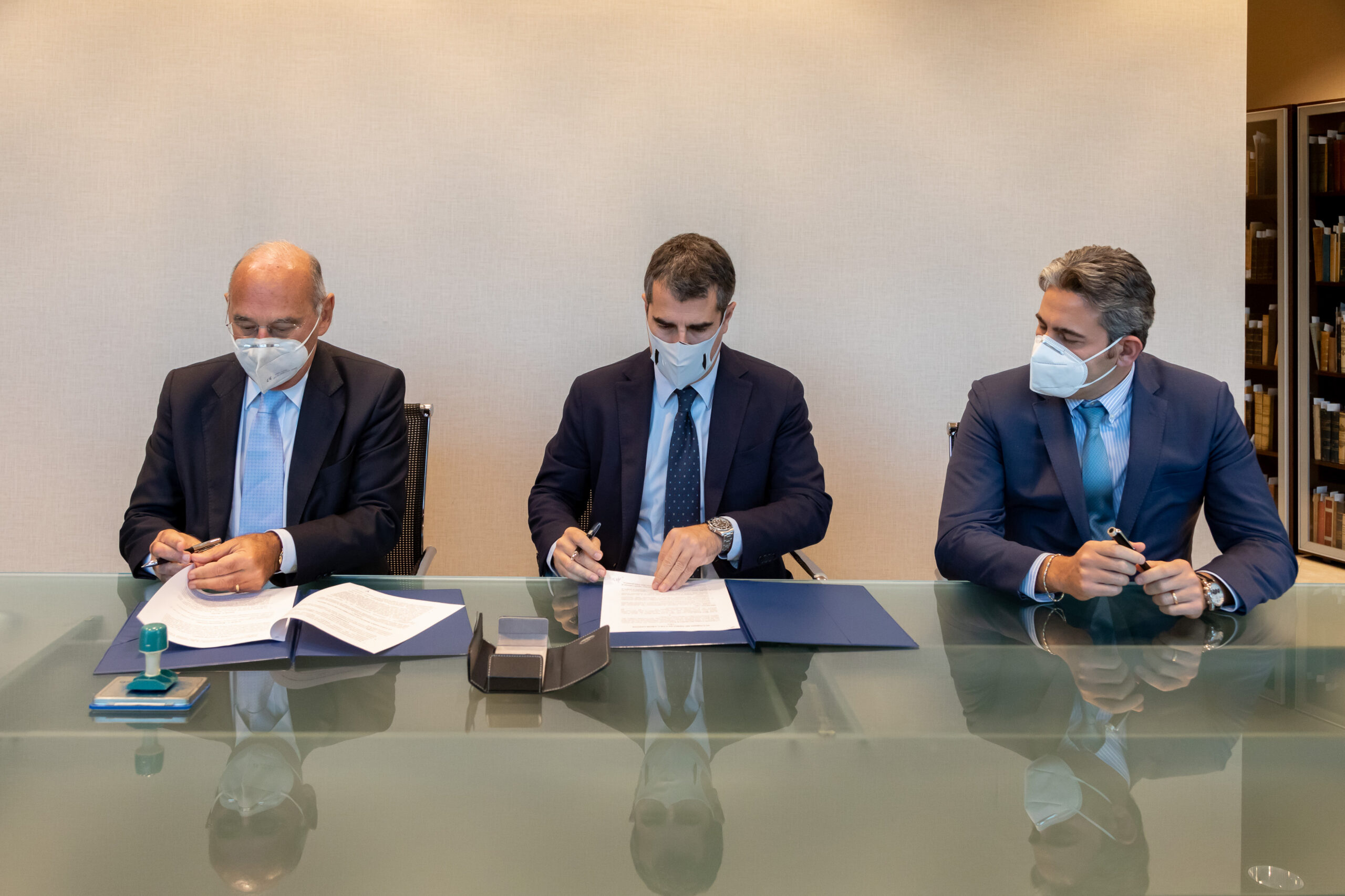 Firma dell’accordo tra il Rettore Calabrò, il Direttore Generale Rossi e il Direttore Relazioni Esterne Federico Sannella
