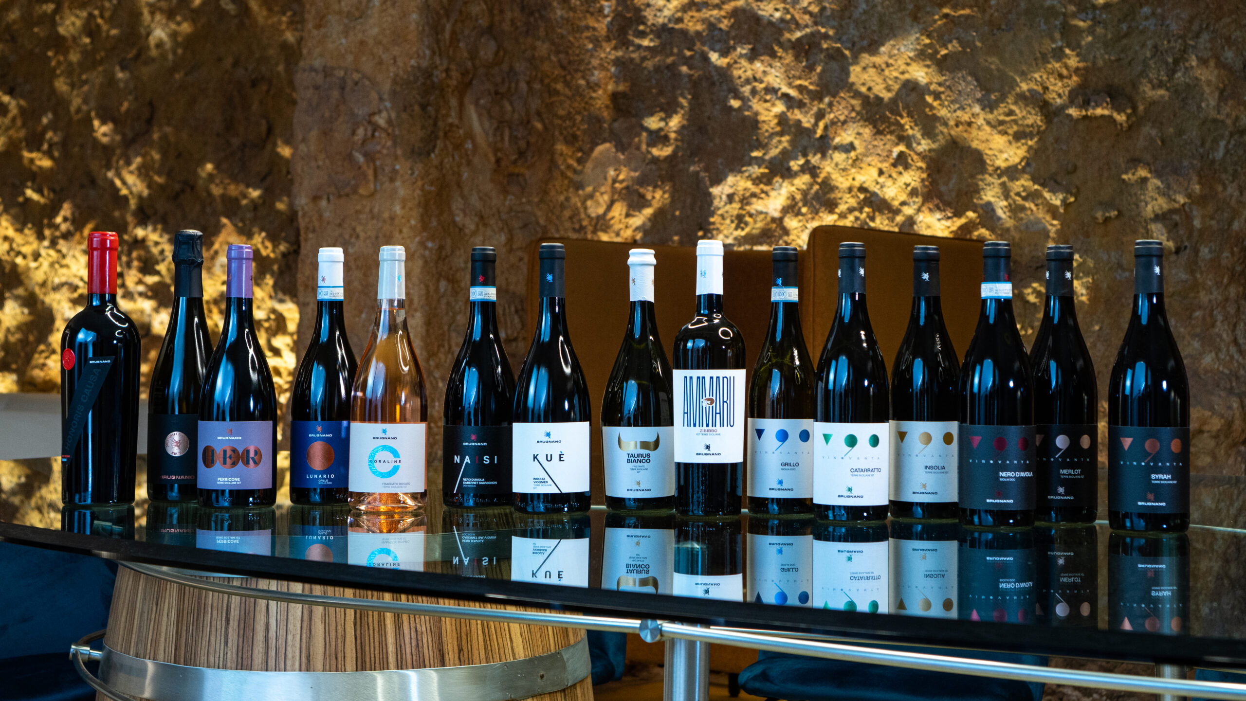 «Il cambio generazionale ha creato un’oggettiva esigenza – racconta Maurizio Nicolò Gandolfo, Direttore commerciale di Brugnano –. Pur rimanendo legati ai valori familiari, si è resa necessaria la ricerca di una maggior coerenza con il profilo personale dei nuovi amministratori. Due anni fa è così stato realizzato un importante lavoro di restyling che ha coinvolto non solo tutte le etichette, ma anche il logo e, soprattutto, l’intera impostazione filosofica, agronomica ed enologica aziendale. Questa rielaborazione del piano industriale è stata avviata a febbraio 2021 per giungere alla definizione grafica a ottobre dello stesso anno, mentre la presentazione al mercato è avvenuta nel marzo 2022». L’aspetto strategico di mercato e di brand è stato definito dal management interno di Brugnano, mentre, per la grafica, la Cantina ha richiesto la consulenza di Atelier790, studio grafico e di comunicazione fondato e guidato da Antonio Giancontieri. «Conoscevo questo studio grazie a precedenti esperienze dirette di collaborazione – spiega Gandolfo –. Abbiamo espresso l’esigenza di tradurre graficamente l’idea del nuovo logo, il layout etichette e dei cartoni, per creare una forte identità visiva omogenea e riconoscibile. Il filo conduttore del progetto è stato quello dell’unicità e della contemporaneità, per essere in grado di trasferire questi stessi valori in modo chiaro e intuitivo ai prodotti, al fine di far percepire al consumatore cosa aspettarsi da un determinato vino già dall’etichetta, senza restarne deluso».