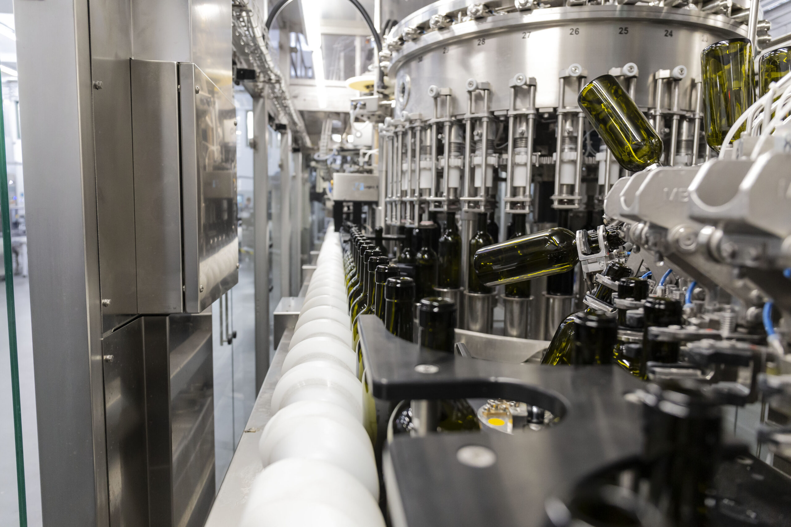 Nel corso del 2022, ad esempio, la cooperativa ha investito circa 2 milioni di euro per l’acquisto di nuovi serbatoi di fermentazione e l’installazione dei relativi impianti idraulici ed elettrici, lavori edili per la zona di posizionamento dei nuovi serbatoi, una nuova pressa per le uve bianche e un nuovo sistema di evacuazione raspi. Quest’ultimo, dotato di coclee e nastri trasportatori, è andato a sostituire il vecchio impianto che lavorava con turbine di aspirazione, permettendo un risparmio energetico di circa l’80% rispetto al sistema precedente. Relativamente all’impianto di imbottigliamento, un monoblocco collaudato nel 2020, esso è costituito da più macchine – sciacquatrice, riempitrice, tappatrice per tappo raso o Stelvin, capsulatrice ed etichettatrice – che rendono quasi completamente automatizzato l’intero processo, a partire dal prelievo del vino dai vinificatori fino al confezionamento. «È un impianto – spiega Bucci – in grado di imbottigliare fino a 7.000 vetri all’ora, ma con un ridotto consumo di acqua e di energia. I motori brushless utilizzati per il suo funzionamento, infatti, permettono un consumo più efficiente dell’energia, mentre l’acqua viene recuperata e scaricata solo a fine ciclo, ottenendo una sensibile riduzione della carbon footprint. Fattore non meno importante è che gli stessi motori, rispetto alla maggior parte di quelli impiegati nel settore per l’imbottigliamento, assicurano un’importante diminuzione dei rumori, garantendo ai dipendenti la possibilità di lavorare in condizioni di maggior benessere e comfort».