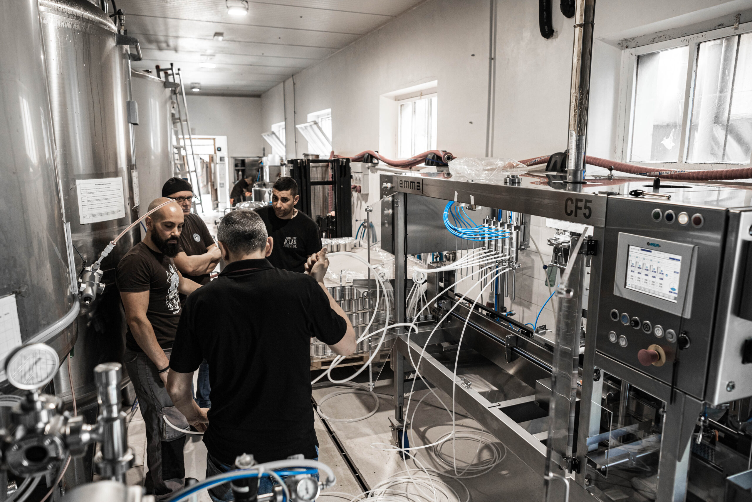 «I nostri investimenti sono orientati, principalmente, all’incremento della qualità del prodotto e alla lotta all’ossidazione delle birre – spiega Recchiuti –: è anche per questo che ci siamo dotati di strumenti che ci permettono di monitorare il livello di ossigeno nelle varie fasi di produzione». Su 3.300 hl di birra realizzati nel 2022 – destinate al mercato nazionale ed estero – sono state prodotte circa 160.000 bottiglie da 0,33 l (16% del confezionato), 50.000 bottiglie da 0,75 l (10%) e 85.000 lattine da 0,33 l (9%); relativamente ai fusti, per il 25% del confezionato è stato utilizzato l’inox, mentre per il 33% i fusti in pet a perdere. «Ci siamo resi conto che il mercato, di anno in anno, richiede sempre maggiormente il formato in lattina – racconta Luigi –. La nostra vecchia lattinatrice, acquistata nel 2017, era una Wilde Goose americana, perché in Italia, all’epoca, non si producevano ancora riempitrici di quella fascia di prezzo – circa 30.000 euro –, ovvero un investimento abbordabile per un piccolo birrificio come il nostro. Durante un festival birrario tenutosi a Reggio Emilia lo scorso anno, però, ci siamo imbattuti nelle soluzioni di EMMA Srl, che conoscevamo già: è stata, infatti, la prima ditta italiana a realizzare un sistema di riempimento di birra gasata non isobarico, come quelli delle riempitrici americane. Approfittando dell’incentivo dell’Industria 4.0, che ci ha permesso di abbattere la spesa, ho acquistato la nuova lattinatrice, più performante e automatizzata della precedente, anche al fine di incrementare la produzione delle lattine».