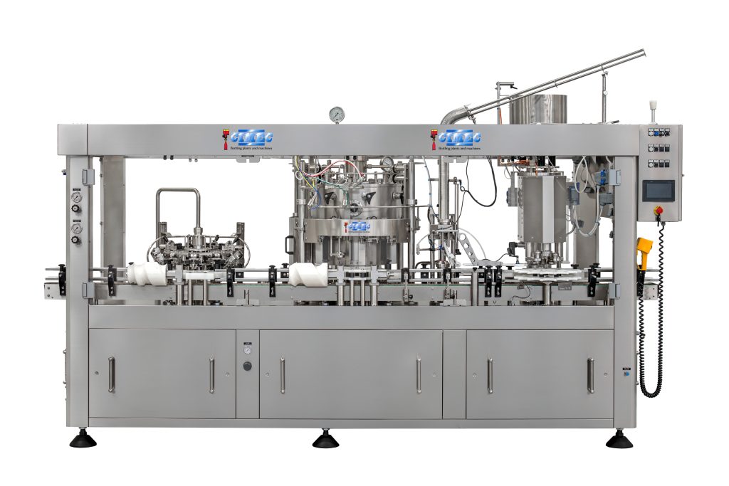 Il cuore della tecnologia CIMEC è la riempitrice con sistema isobarico: la pressione all’interno del contenitore viene portata alla stessa pressione della campana di riempimento, creando una condizione isobara. Il liquido viene introdotto nel contenitore, evitando perdite di gas e turbolenze che potrebbero causare formazione di schiuma.