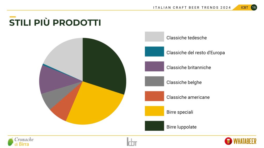 Quasi la metà delle birre inedite del 2024 è rientrata in due famiglie brassicole: le American IPA, declinate soprattutto secondo il modello della West Coast, e le Lager della tradizione mitteleuropea, con un’interessante ascesa degli stili tipicamente cechi. Due macro categorie diverse tra loro da diversi punti di vista, ma accomunate dalla propensione a una bevuta immediata e relativamente semplice, senza troppi fronzoli. In generale gli stili appartenenti alla tipologia delle “birre speciali” hanno mostrato una discreta tenuta, sebbene alcune specialità, come le Italian Grape Ale, siano apparse in sofferenza. Un calo evidente ha riguardato anche gli stili della cultura brassicola belga, sempre più trascurati nelle scelte dei birrifici italiani.