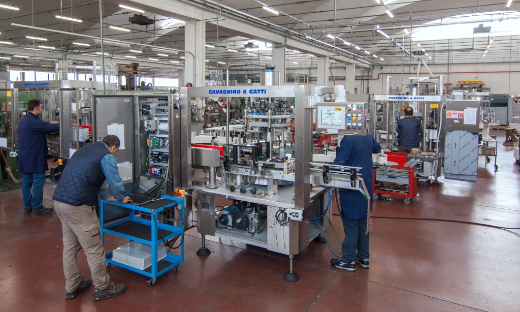 Se inizialmente i clienti della Cavagnino & Gatti furono i produttori locali, per i quali venivano prodotte macchine lineari e semiautomatiche per etichette carta colla, con carico e scarico manuali, gli anni Sessanta del secolo scorso segnarono la svolta.