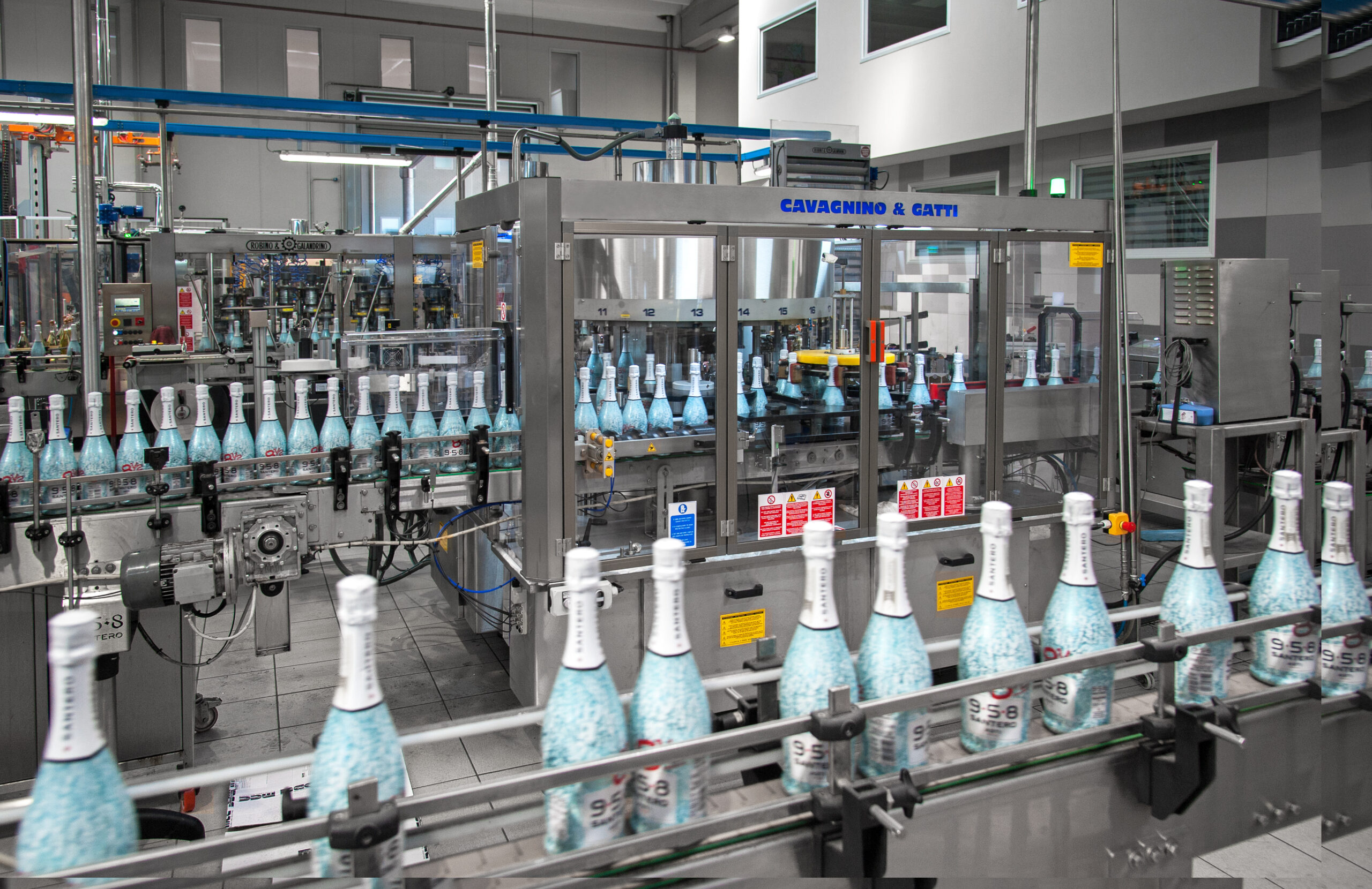 È in questo momento che le bottiglie, precedentemente risciacquate con una soluzione antibatterica a base di acqua e solforosa, sono posizionate sul nastro trasportatore di una delle due linee di imbottigliamento, le quali, in totale, hanno una potenzialità di circa 20.000 pezzi all’ora. Una volta disposti sulla linea, i vetri passano nella riempitrice, che versa il vino conservato a una temperatura di 0°C; le bottiglie piene sono poi tappate e riscaldate a circa 20°C, un processo che favorisce l’etichettatura, quindi vengono avviate prima ai cartoni, per l’imballo, e in ultimo al pallettizzatore, per la sistemazione definitiva prima della spedizione. Le etichette, per Santero, sono senza alcun dubbio uno degli elementi più distintivi: caratterizzate da forme, colori, sfumature e riflessi ricercati, curate in ogni minimo dettaglio e particolare, esse conferiscono raffinatezza, stile e contemporaneità a tutti i prodotti della Cantina. La costante voglia di investire e innovare di Santero ha spinto la proprietà, di recente, a sostituire un’etichettatrice Cavagnino & Gatti acquistata nel 2014 con un nuovo macchinario della stessa ditta, per ottenere una produzione oraria superiore e per raggiungere un maggior grado di automazione del ciclo produttivo, assicurandosi ampie possibilità in termini di applicazioni e orientamenti ottici.