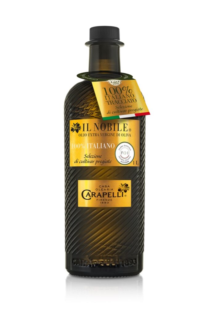 Il nuovo premium “Il Nobile” Carapelli propone un olio evo 100% italiano ottenuto da un attento blend delle cultivar Cima di Bitonto (del barese), Peranzana (del foggiano), Coratina (del nord barese) ed Ogliarola (del Mezzogiorno d’Italia). “Il Nobile” si esprimerà in un olio dal profilo armonico con delicate note di piccante e amaro e, al contempo, con un sapore fruttato. Inoltre, si distinguerà per un ottimo equilibrio gusto olfattivo fra il suo sapore deciso con un retrogusto piacevolmente amarognolo e leggermente piccante, bilanciato perfettamente nel finale con sentori di mandorla. Tutto ciò lo distinguerà dal precedente – caratterizzato sempre da una selezione di alto pregio – ma di oli comunitari.