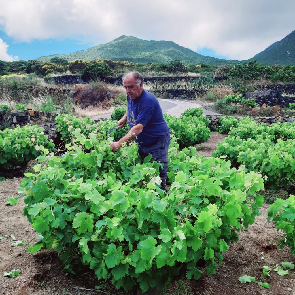 La gioventù di Salvatore è nei suoi vini e nel suo cuore generoso. Produce passiti dolci, ma vinifica anche lo zibibbo come bianco secco (cappero sotto sale che si è fatto liquido) e recentemente ha realizzato un Metodo Classico che vede il miracolo della trasformazione di un’uva dolcissima e aromatica come lo zibibbo in un vino verticale, sapido e freschissimo. Questo è quanto inciso sull’etichetta del suo Creato, il passito che ha dedicato alla madre: “Questo vino racchiude in sé, facendo sprigionare all’olfatto e al gusto, il sapore dei vulcani, le acque degli Dei, per poter raggiungere l’infinito. Non può che essere il nettare di un Dio che conosce le esatte mescolanze e fa sentire agli uomini quello che la mente non può riuscire a pensare. Distribuisce piacere, fa misurare la propria profondità”.