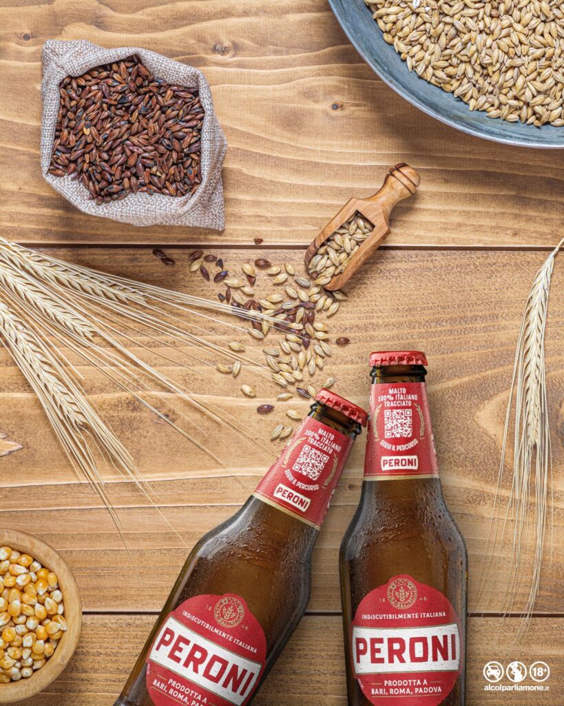 Peroni annuncia grandi cambiamenti nell’identità visiva e nel suo posizionamento con una nuova immagine e una nuova campagna di comunicazione. Con l’utilizzo inoltre della tecnologia blockchain, per tracciare il malto 100% italiano della sua filiera, propone un nuovo dialogo al consumatore, parlando di qualità, sostenibilità e innovazione e facendosi portavoce di un messaggio che da sempre la contraddistingue: Se Ci Unisce è Peroni.