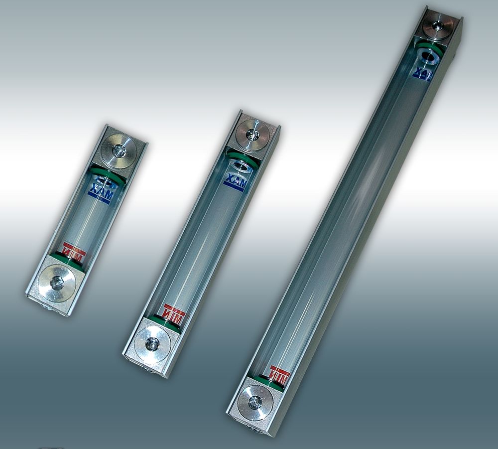 F.lli Giacomello produce da 25 anni livelli visivi tra i più flessibili in commercio, con l’obiettivo di presentare sul mercato mondiale dei prodotti in grado di raggiungere un livello di qualità e innovazione tecnologica sempre maggiore. Da qui la scelta di migliorare la serie degli LV/M, già particolarmente curata nel design, potenziandone le possibilità di applicazione attraverso l’utilizzo di nuovi materiali. Il principio impiegato è quello dei vasi comunicanti: il liquido proveniente dal serbatoio, a cui l’indicatore di livello è applicato, per mezzo di viti cave attraversa il tubo trasparente, rivelandone il preciso punto raggiunto all’interno del serbatoio. La serie degli LV/M si presenta con diverse opzioni: interassi 76, 127, 254 mm (+-1), intercambiabili con la maggior parte dei livelli visivi in commercio; differenti materiali utilizzati per il tubo trasparente, le testate e gli O-ring; versione in acciaio inox Aisi 316 nelle parti metalliche a contatto con il liquido. Gli LV/M sono caratterizzati, inoltre, da interessanti vantaggi tecnici: indicazione costante e continua del livello del liquido; manufatto protetto dagli urti mediante un profilo a “U” in alluminio anodizzato; luce utile eccellente in rapporto all’interasse; non essendo un manufatto rigido, è possibile correggere piccoli difetti d’esecuzione ed errori d’ortogonalità.