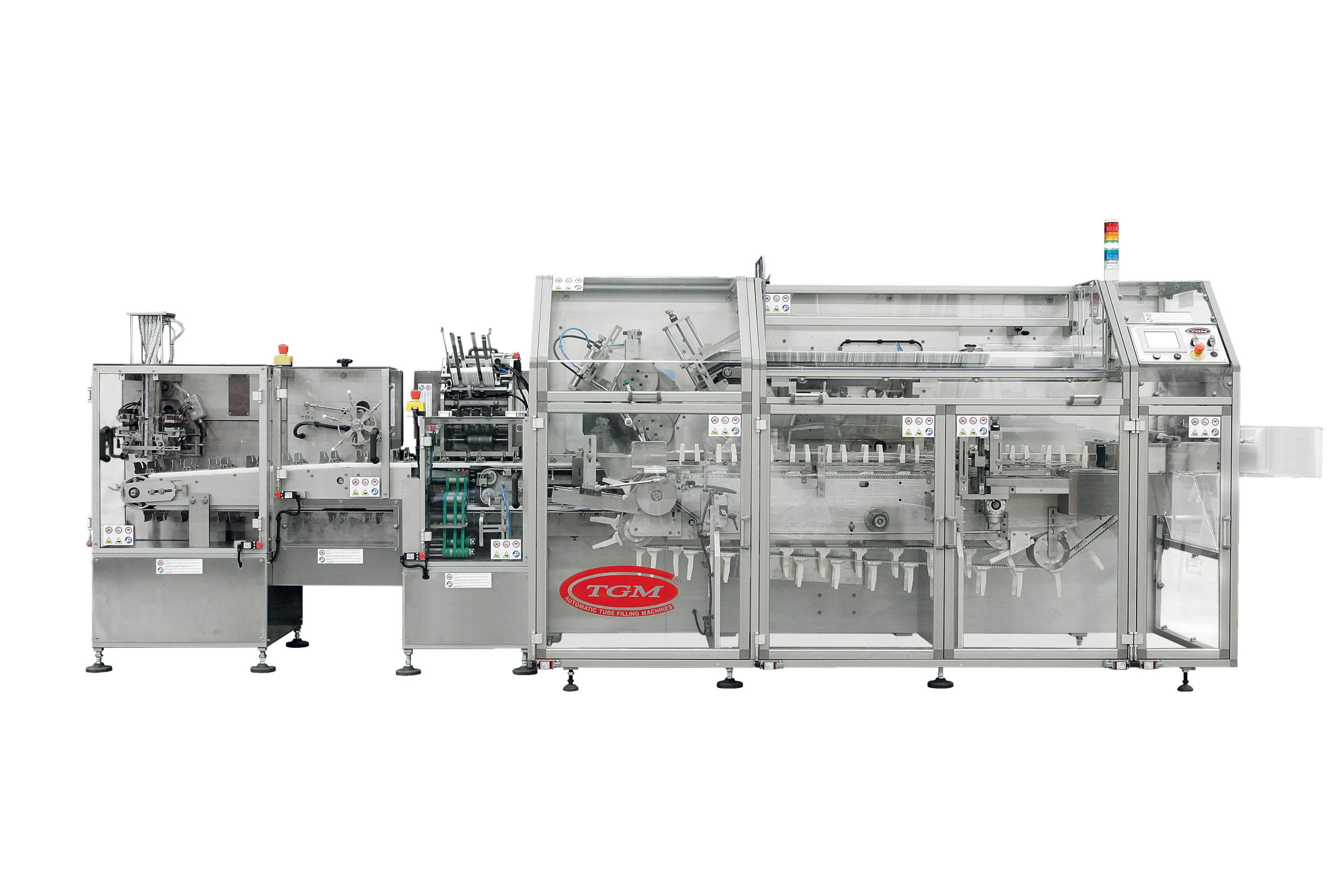 Il touch screen permette agli operatori di navigare rapidamente tra le diverse funzionalità e impostazioni, migliorando l’efficienza della produzione e semplificando il lavoro quotidiano degli operatori. La macchina raggiunge produttività di 15.000 pezzi/h, ha una struttura a balcone ed è dotata di numerosi accessori, tra cui sistemi di carico per prodotti diversi come tubetti, flaconi, vasetti eccetera.
