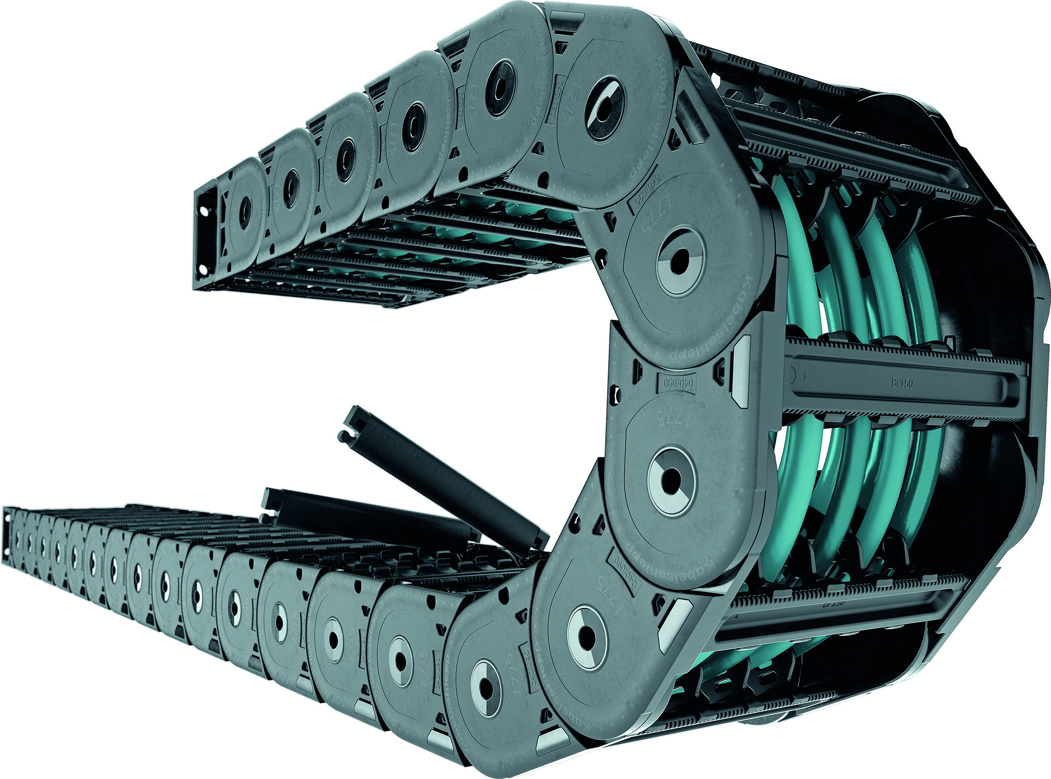 Nuove larghezze per la catena portacavi serie Uniflex Advanced 1775 e grazie anche alla combinazione del sistema di separatori salvaspazio TS3 sono realizzabili applicazioni in nuovi ambiti industriali, in particolare nella costruzione di utensili e per applicazioni di scorrimento su gantry o assi.