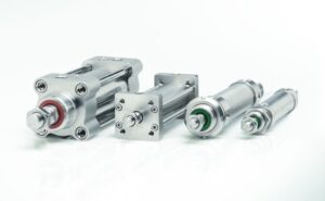 Le quattro serie di cilindri pneumatici sono accomunate dal materiale di costruzione ma distinte per caratteristiche e dettagli fondamentali. La serie Y a norma ISO 15552, con tubo tondo e tiranti fino all’alesaggio 125 mm, ha guarnizione dello stelo certificata FDA. La serie X a norma ISO 21287, anch’essa con tubo tondo e tiranti, comprende alesaggi da 20 a 200 mm. La serie Z, con minicilindri a norma ISO 6432 con diametri da 16 a 25 mm, è particolarmente resistente grazie al montaggio a doppia rollatura.