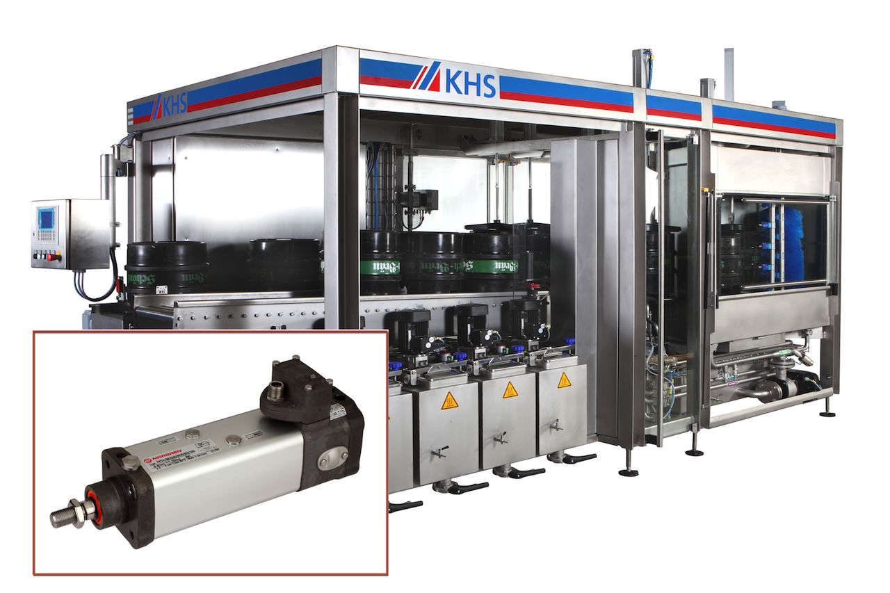 Questo aspetto trova ampiamente riscontro nell’ambito della produzione di bevande: i fusti devono infatti essere puliti accuratamente prima di poter essere riempiti con vino, birra, bevande analcoliche, acqua o succhi di frutta. I metodi per effettuare queste operazioni spaziano da singoli sistemi pulenti semiautomatici e macchine riempitrici a linee di trattamento per fusti completamente automatiche. La soluzione giusta per KHS Con più di 5500 dipendenti, KHS – con sede a Dortmund, in Germania – è un’azienda di spicco nel campo dei sistemi di riempimento e di confezionamento innovativi di alta qualità per l’industria alimentare e delle bevande. È specializzata nella produzione di sistemi di pulizia e riempimento dei fusti con una capacità da 500 a 1500 fusti all’ora. L’azienda stava cercando un nuovo partner tecnologico per le proprie soluzioni Innokeg Till Combikeg. Queste macchine di pulizia e riempimento estremamente compatte combinano pulizia interna ed esterna del fusto, erogazione di prodotti chimici, controllo e movimentazione. Quello che KHS stava cercando era una soluzione efficace per avere una pressione corretta e continua a contatto con il fusto in corrispondenza della testa operatrice durante tutte le fasi del processo.