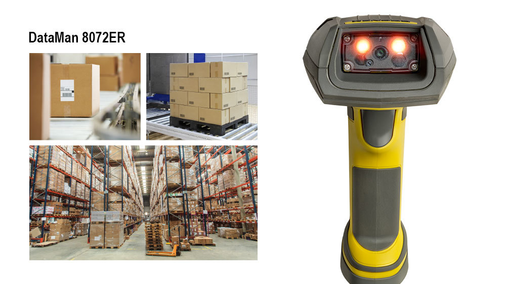 Il DataMan 8072ER invece è perfettamente in grado di leggere codici 1D e 2D su etichetta fino a otto metri di distanza, ideale dunque per la scansione di etichette su pallet su ripiani alti o su cartelli appesi al soffitto di un magazzino.