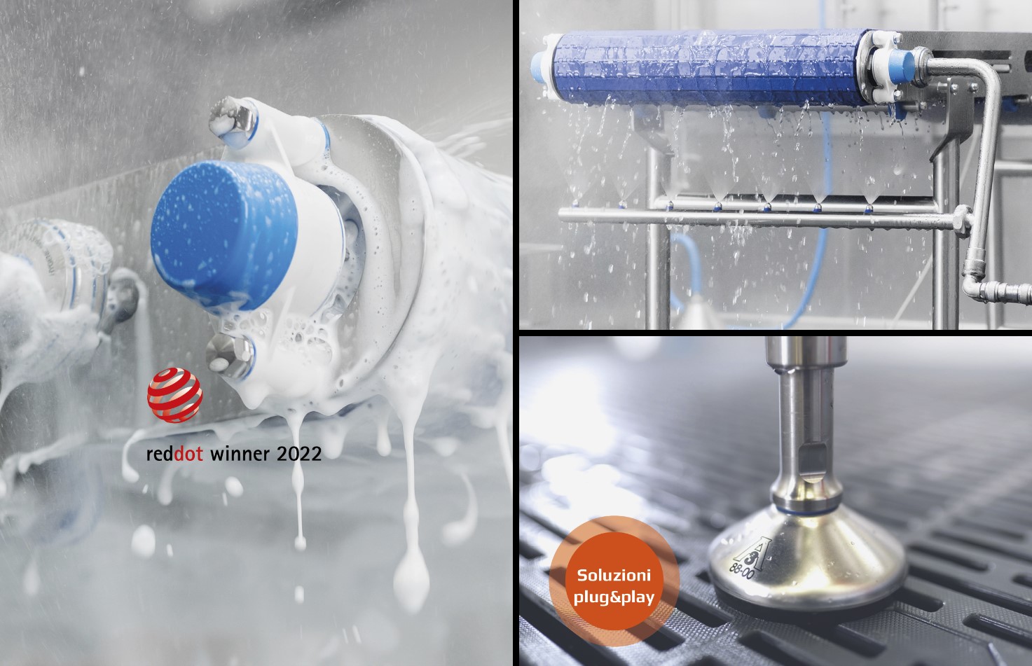 Tutti i prodotti sono progettati come soluzioni plug & play, facilmente e velocemente installabili, in grado di sostituire gli attuali componenti non igienici. Il catalogo è ricco di componenti igienici, tra cui supporti per cuscinetti o piedini regolabili 3A.