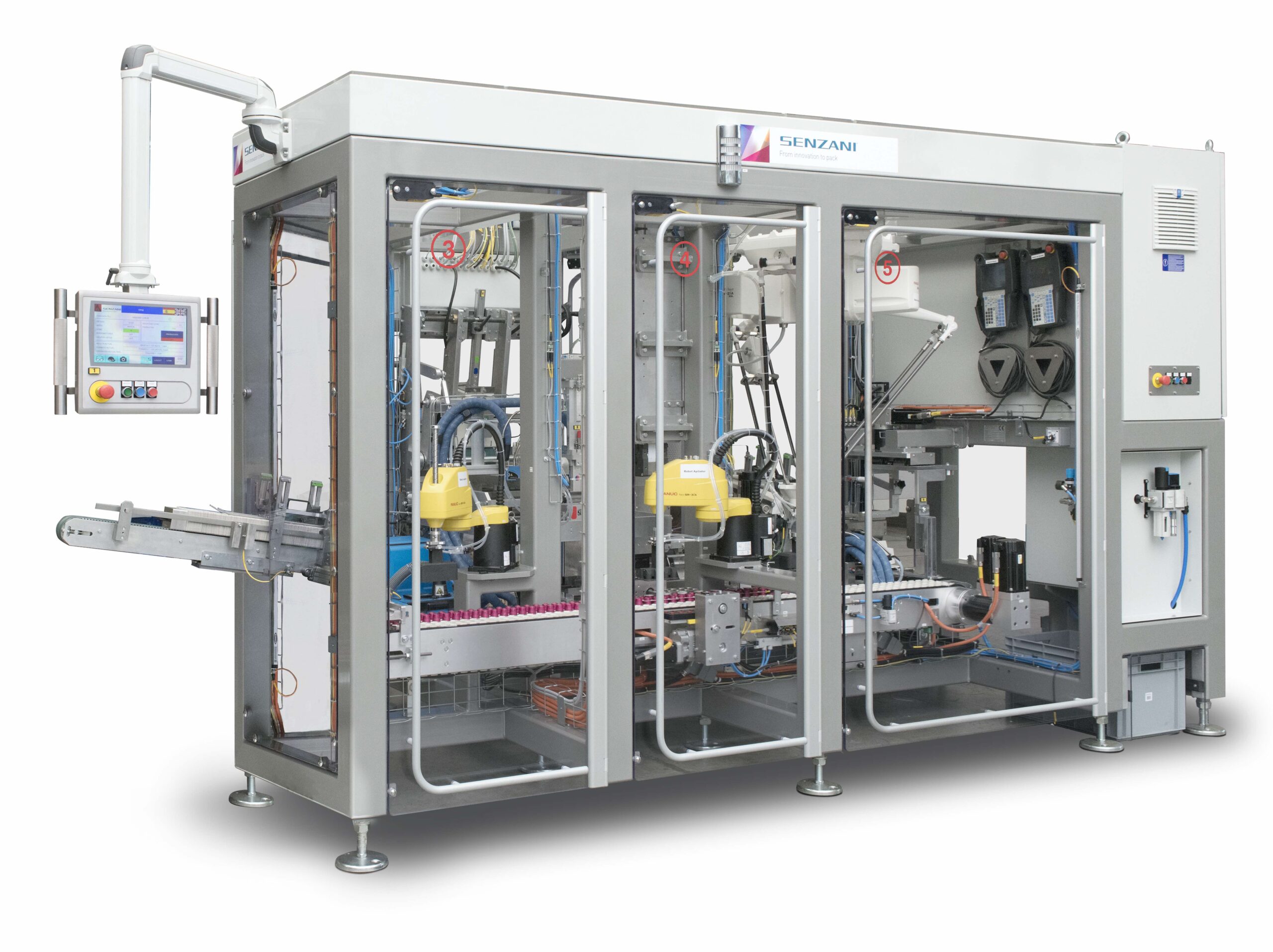 Caratterizzata da flessibilità, può essere adeguata alle richieste e alle configurazioni più complesse. L’ingombro dell’astucciatrice è ridotto (2,5×1,2×2,1 m), il che la rende perfetta anche in caso di stabilimenti con limitazioni di spazio. Il cambio formato è veloce, intuitivo per l’operatore grazie a codici colore che guidano le operazioni.