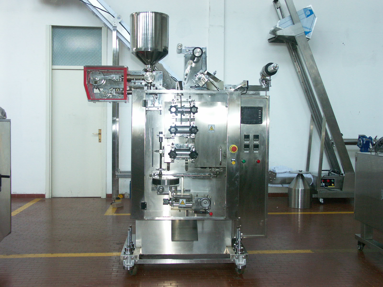 Le bustine possono essere realizzate con tre o quattro saldature. La macchina pesa 610 kg ed è adatta per confezionare creme, oli, paste alimentari eccetera. Comprende un dosatore dotato di un apposito mixer per i prodotti più densi e cremosi, un marcatore a caldo e una fotocellula per i film stampati.