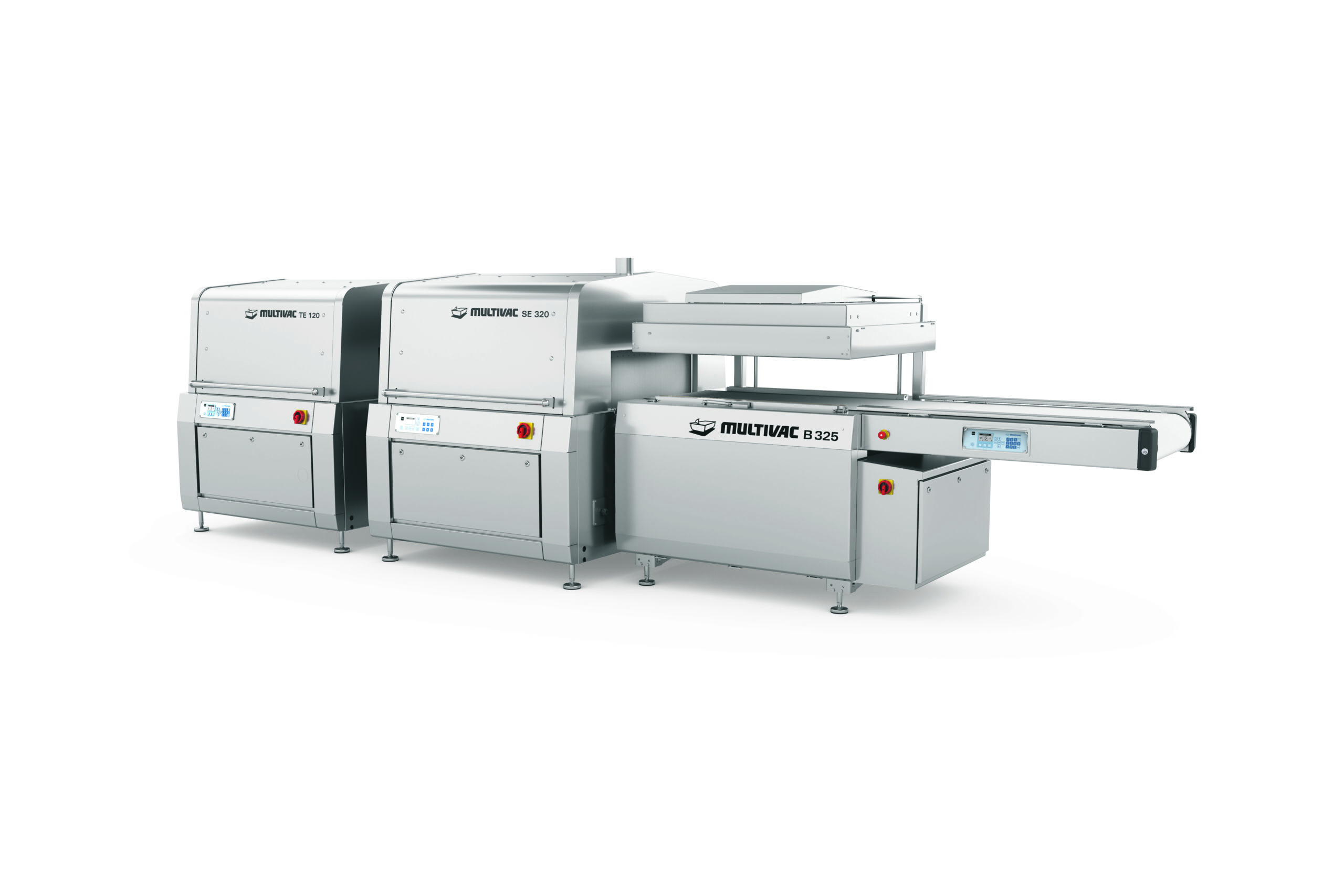Multivac B325 è una confezionatrice a nastro di dimensioni compatte ampliabile in linea con tunnel di termoretrazione e asciugatura (configurazione in foto). Su richiesta è disponibile anche con nastro di trasporto a facchini per il confezionamento di prodotti cilindrici.