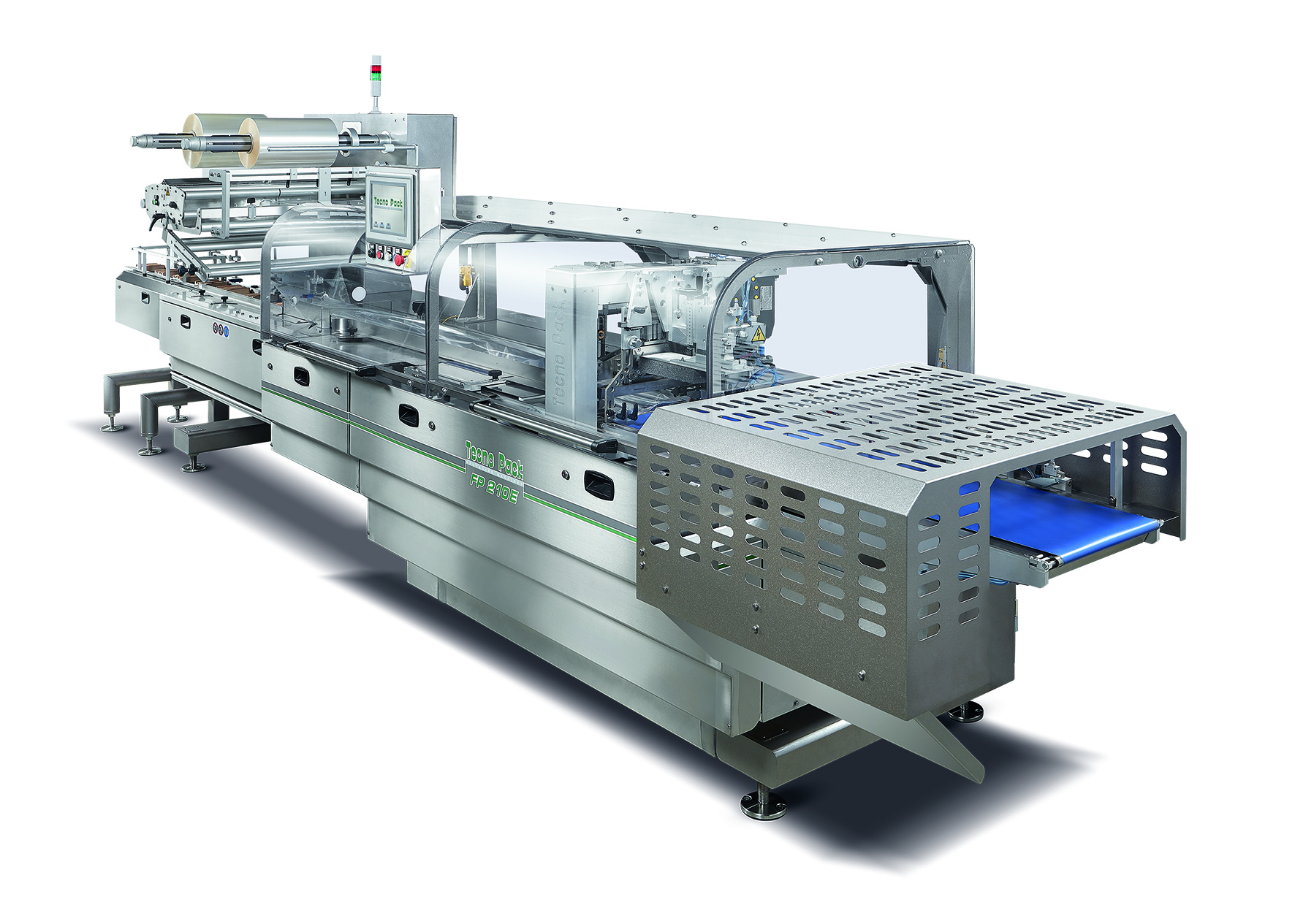 FP210E orizzontale multi-assi per il confezionamento in atmosfera modificata. Le confezioni ottenute sono totalmente ermetiche grazie al sistema di saldatura box motion.