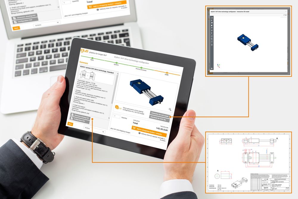 Igus ha sviluppato un configuratore che consente di progettare in modo veloce e semplice tutte le slitte con azionamento a vite. Bastano pochi clic: nel primo passaggio l’utente determina parametri, tipo di vite e relativa filettatura e materiale dei componenti, quindi configura liberamente sia il tipo di slitta sia i sistemi con più slitte e il codolo di comando.