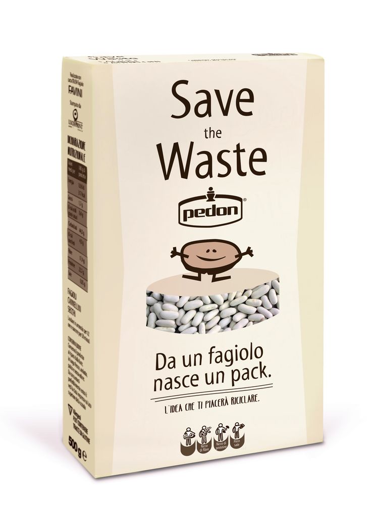 SaveTheWaste_packEd è dalla coltivazione alla lavorazione che gli scarti dei processi sono stati recuperati e impiegati nella produzione di una nuova carta chiamata carta CRUSH Fagiolo che riduce del 15% l’impiego di cellulosa vergine proveniente da alberi e diminuisce del 20% l’emissione di gas effetto serra. Il risultato è un astuccio certificato FSC e OGM Free, che può stare a contatto diretto con il prodotto, eliminando così la busta interna al pack, e che racchiude il 30% di fibra riciclata post-consumo. Gli inchiostri ecologici e la finestra trasparente in PLA ottenuta sempre da scarti vegetali rendono il packaging eco-sostenibile e al 100% riciclabile. Inoltre, l’energia utilizzata lungo l’intero processo, dalla produzione della carta al confezionamento, proviene da fonte rinnovabile. Da segnalare anche la sinergica collaborazione all’interno del progetto con due aziende vicentine, Favini e Lucaprint, che hanno condiviso conoscenze e ricerca, generando così innovazione. Carta CRUSH Fagiolo è stata realizzata da Favini, azienda specializzata nella produzione di carte ecologiche e in particolare di CRUSH contenente sottoprodotti della filiera agro-industriale, che ha dato vita a questa nuova carta perfetta per il packaging Pedon. Di LucaPrint invece lo sviluppo della soluzione cartotecnica, un astuccio eco-sostenibile presentato oggi a EXPO Milano 2015, in occasione del Convegno “Facciamo luce sul ruolo del packaging nella lotta agli sprechi alimentari”.