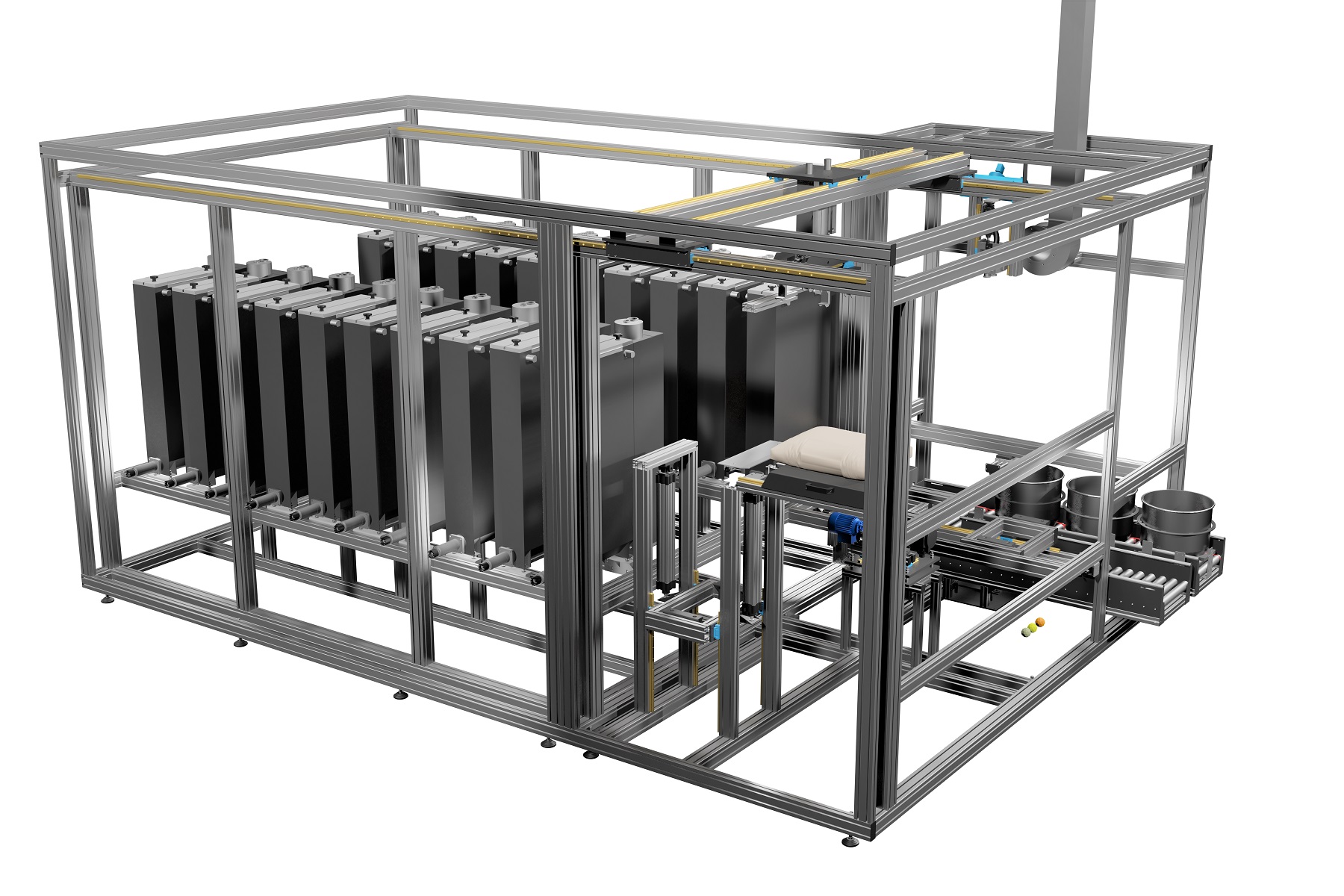 Durante il dosaggio, un trasportatore multiscala aspirato permette la pesatura precisa di ricette direttamente in un contenitore o in sacchetti creati in modo completamente automatico.