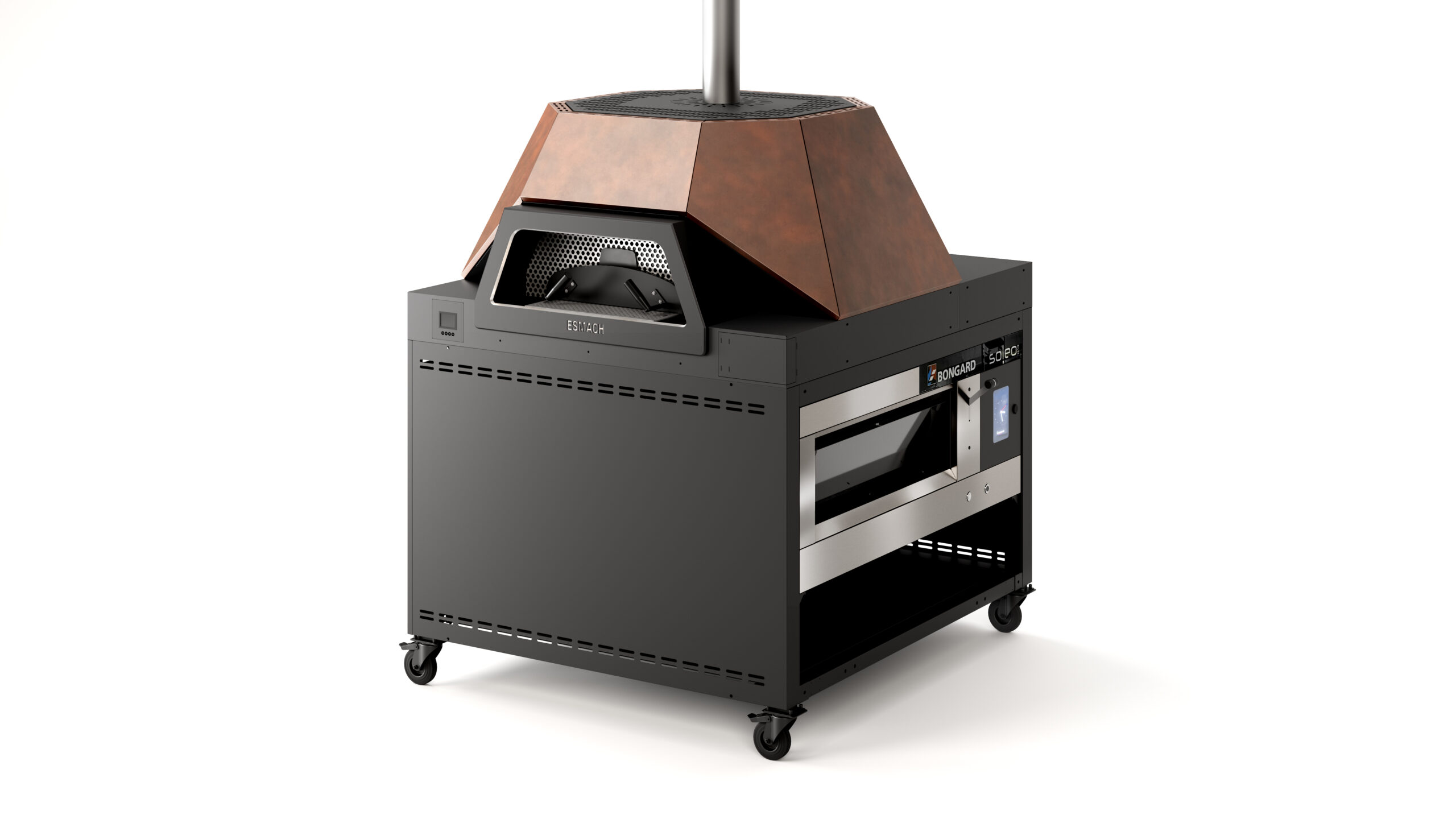 Le caratteristiche tecniche sono: temperatura di cottura a 500°C, resistenze dedicate per forma e sezione, aspirazione fumi in camera attraverso cappa frontale, inerzia termica e accumulo di energia grazie al refrattario laterale e superiore, caminetto con serranda regolabile, predisposizione per utilizzo con soleo.