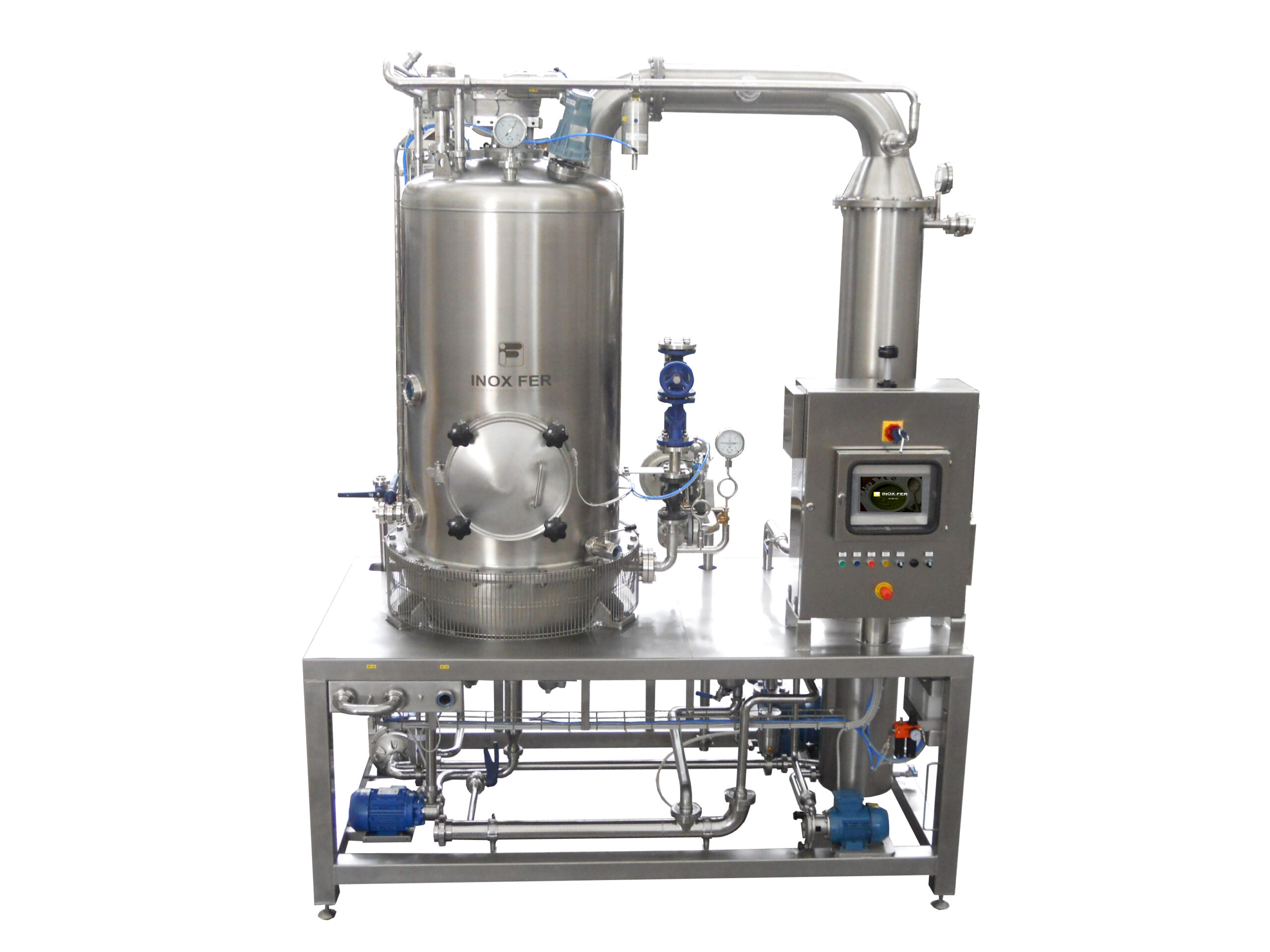 Le similitudini nella lavorazione di frutta e pomodoro fresco (ricevimento del prodotto, lavaggio e cernita, triturazione, preriscaldamento, raffinazione, concentrazione, stoccaggio, pastorizzazione) hanno consentito a Inox Fer di realizzare una linea di produzione estremamente versatile. Capace di trattare diverse tipologie di prodotti, è ottimale per realtà produttive di piccole e medie dimensioni. Da qualsiasi frutto si parta per la realizzazione di salse, nettari e confetture, la linea permette di sfruttare i medesimi passaggi. In tal modo i clienti con una produzione diversificata non sono costretti ad acquistare più macchine. La prima fase è quella di ricevimento e lavaggio, dove il prodotto è scaricato nella vasca per essere lavato e poi trasferito nella zona di cernita per cascata, dove subisce un processo di triturazione. Il riscaldamento è una fase delicata, tanto che in base al prodotto da ottenere sarà utilizzata una lavorazione hot break oppure cold break. Nella fase di raffinamento il prodotto è sminuzzato fino a renderlo della consistenza giusta per il prodotto finale da ottenere, per poi essere separato dagli scarti destinati allo smaltimento. Al momento dello stoccaggio, il succo fin qui ottenuto è convogliato in un serbatoio che alimenta a ciclo continuo l’evaporatore. L’evaporazione è fondamentale ai fini del prodotto da ottenere, e in base alla densità finale richiesta si può scegliere di concentrare il prodotto utilizzando una bolla o un concentratore a triplo effetto con evaporatori variabili. Così concentrati, la salsa, il sugo o il nettare sono canalizzati in un secondo serbatoio di stoccaggio, prima di essere pastorizzati.