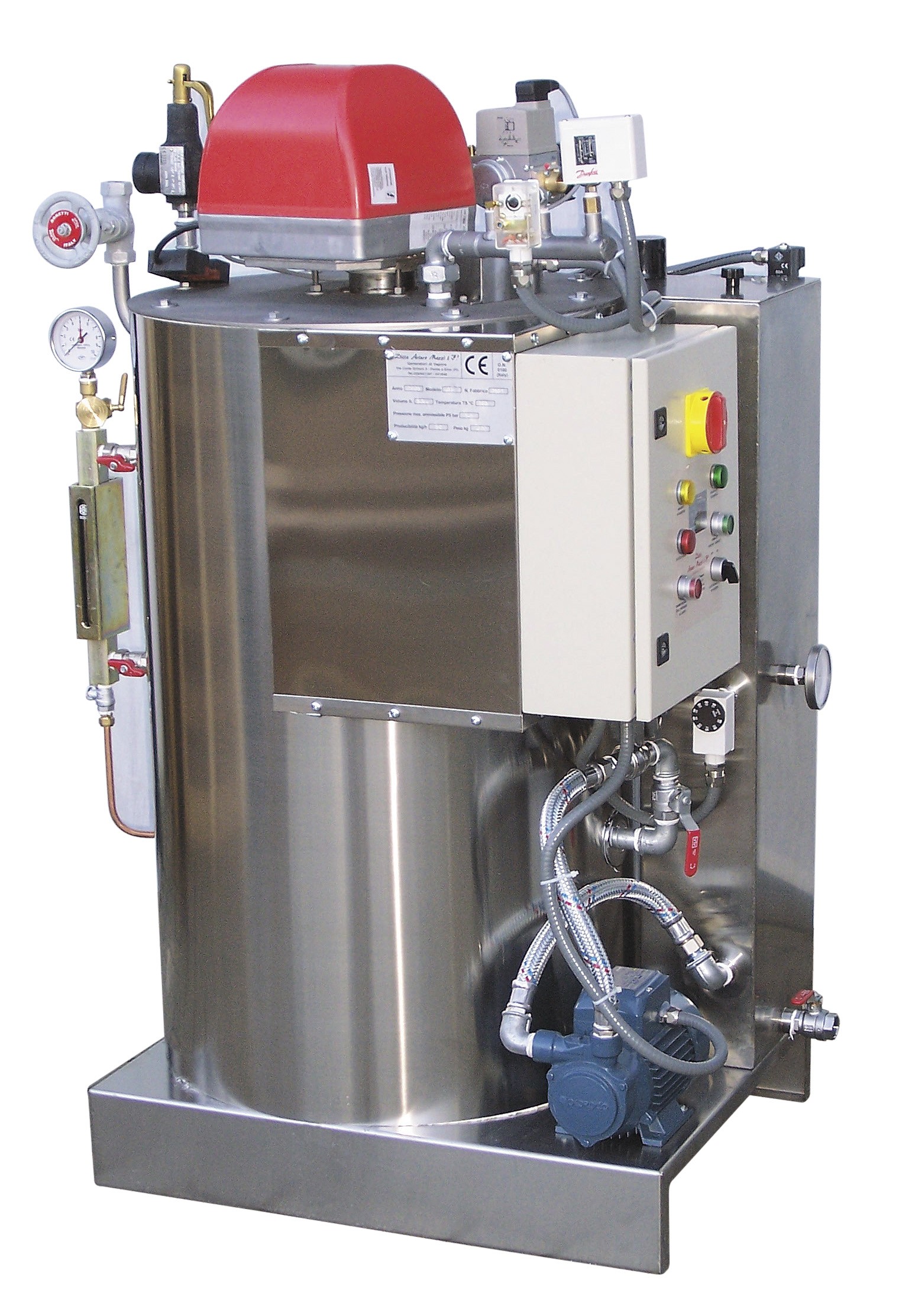 Il generatore AB di Arturo Mazzi è montato su una pedana di lamiera inox ed è completo di rubinetteria, controllo di livello a sonde, pompa elettrica trifase o monofase, quadro elettrico di comando e controllo, vasca di alimentazione e recupero condense d’acciaio inox.16