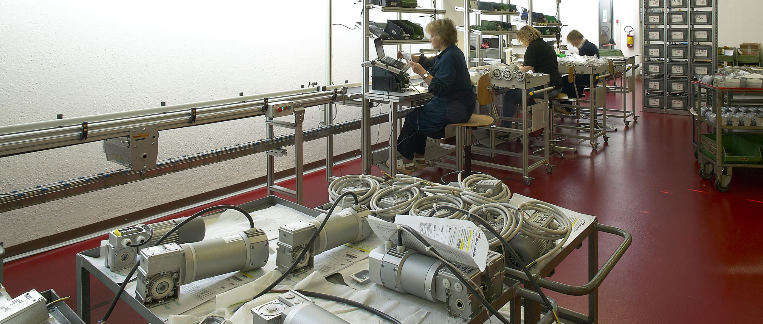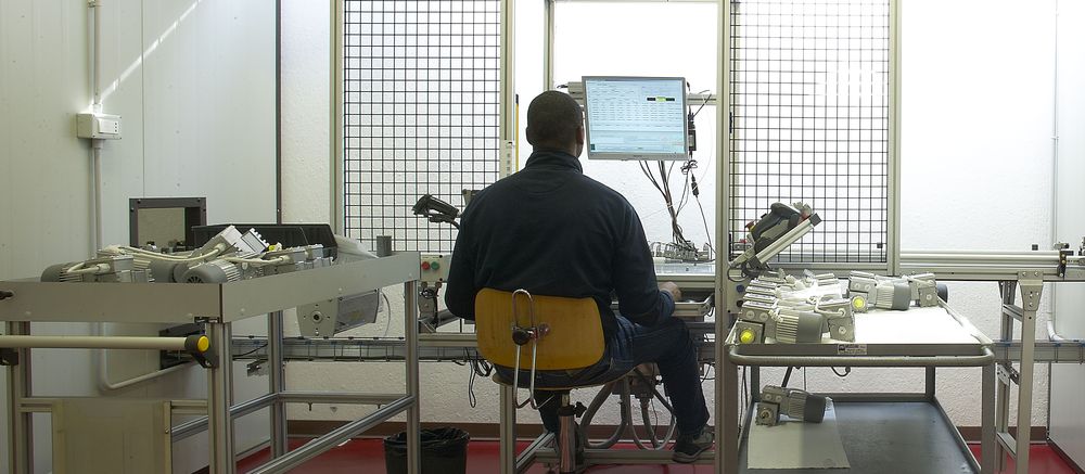 Gli operatori preposti intervengono in tre fasi successive. Inizialmente, un operatore riceve dalla linea di assemblaggio il motoriduttore, vi appone un codice QR e lo prepara per i vari test predisponendone i cablaggi. Nella fase centrale il motoriduttore viene messo in funzione e collegato ad apparecchiature elettroniche che rilevano automaticamente i valori di velocità, rumorosità e rigidità dielettrica: tali valori devono rientrare nel range prefissato da Mini Motor per quel particolare modello; se i valori sforano per eccesso o per difetto, il prodotto viene rimandato in produzione per ulteriori accertamenti. I valori registrati compongono un file completo del motoriduttore – comprendente anche la sua fotografia – che costituisce una vera e propria carta di identità e, insieme, una “pagella” del medesimo. Il file confluisce poi in un server dedicato in cui sono archiviati i dati dell’intera produzione Mini Motor. Nella terza e ultima fase il motoriduttore viene preparato per la spedizione.
