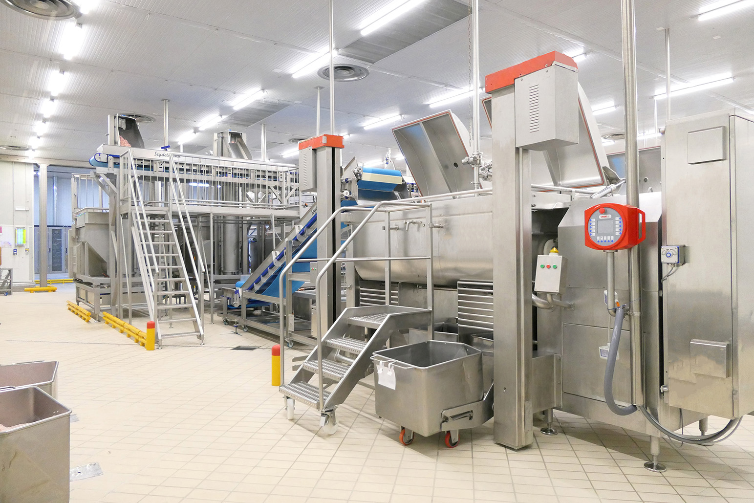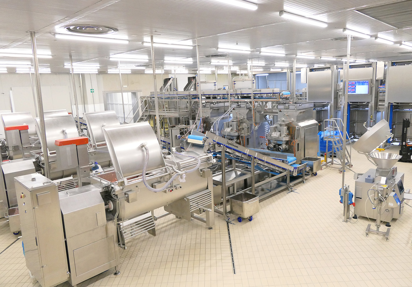 La carne viene macinata a bassa velocità tramite una tecnologia a vite di spinta e un gruppo di taglio ad estrusione. Sono stati rinnovati anche i tritacarne raffinatori, in grado di lavorare la carne in maniera più rispettosa. Tutti i motori principali della linea sono dotati di inverter, necessari sia per controllare la potenza erogata, affinché venga utilizzata solo l’energia necessaria all’effettiva lavorazione del prodotto, sia per monitorare lo stato di salute delle macchine. Il software di gestione del nuovo impianto è infatti in grado di scambiare in tempo reale i dati di funzionamento, rendendo così possibile la riduzione dei fermi produttivi per rotture accidentali, l’ottimizzazione del flusso del prodotto e il monitoraggio dei consumi energetici.