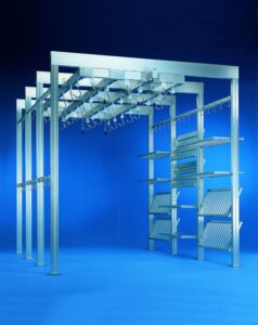 Gimar produce attrezzature d’alluminio anodizzato per interni ed esterni di celle frigorifere di macellerie, reparti carne di supermercati, laboratori, negozi alimentari, aziende agricole e agrituristiche. Soprattutto guidovie, scaffalature, tavoli, carrelli, pese aeree, paranchi e articoli speciali. La foto mostra una guidovia modulare autoportante installabile all’interno e all’esterno di una cella frigorifera. Costruita con profili in lega d’alluminio anodizzato e viteria d’acciaio inox, ha un’elevata resistenza ai carichi, documentata da certificazioni rilasciate dal dipartimento di Costruzione e trasporti presso l’Università degli Studi di Padova. La semplicità e la rapidità di assemblaggio sono garantite da una tecnologia all’avanguardia. La sicurezza sotto il profilo igienico è data da superfici lisce, rese tali con un trattamento di ossidazione anodica con finitura spazzolata che le rende facili da pulire e inalterabili nel tempo.