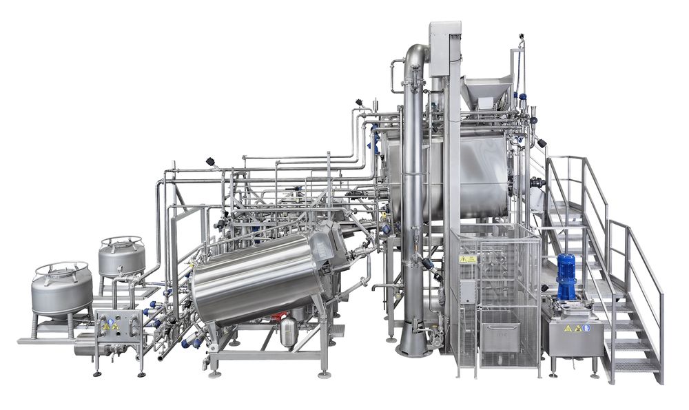 La soluzione standard prevede l’accoppiamento di bolle di evaporazione e scongelatori ad asse orizzontale (JPB205 e JPB202 adatti anche a confetture) e raffreddatori in batch YPB207 per il raffreddamento in condizioni sterili di semilavorati di frutta destinati al confezionamento asettico. A valle dell’impianto è possibile installare un sistema di riempimento sterile secondo le esigenze del cliente.