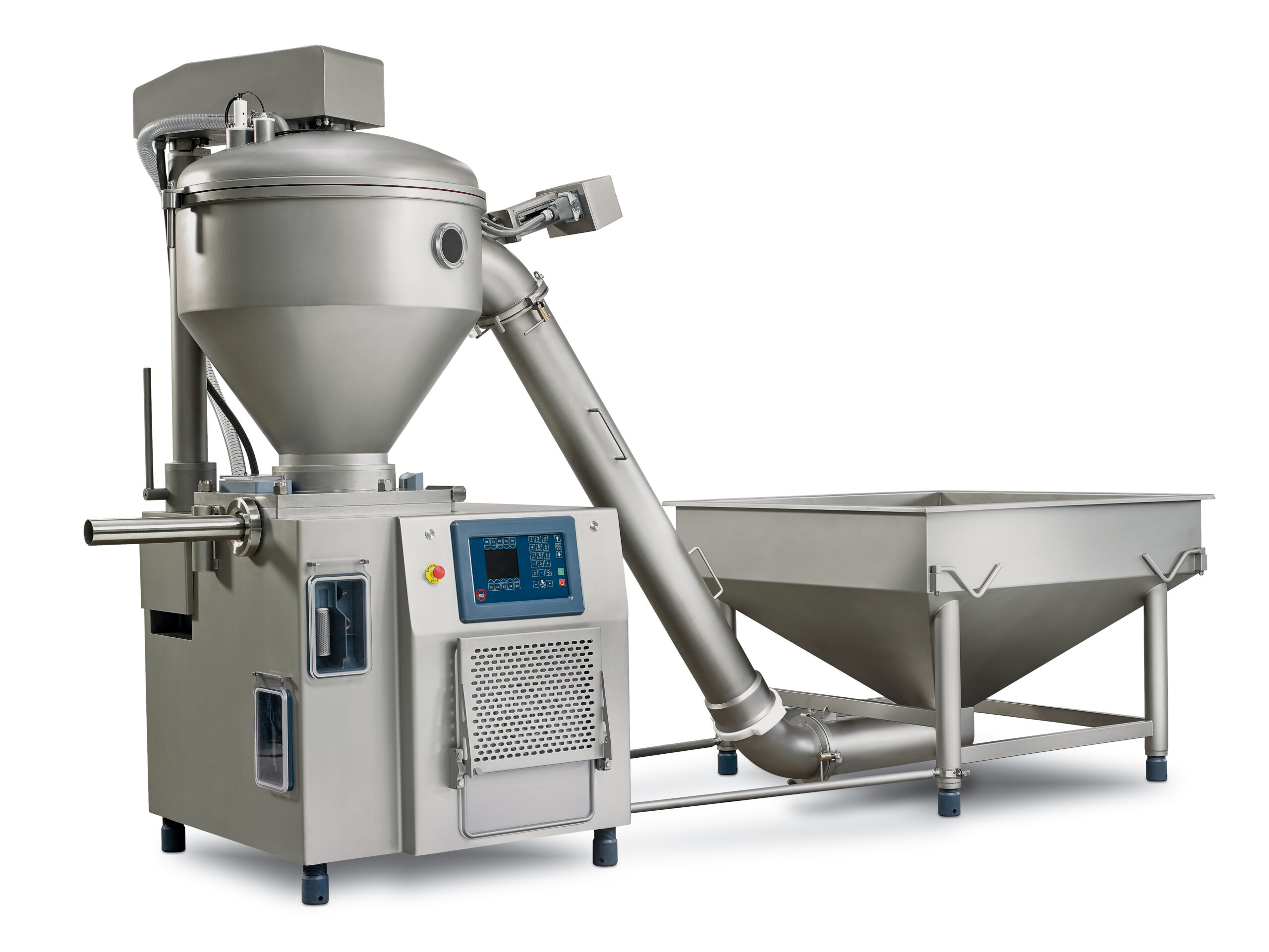 La presenza di due circuiti indipendenti del vuoto (in fase di caricamento in tramoggia e di insacco) consente la massima estrazione dell’aria, rendendo il prodotto finale compatto e perfetto al taglio. Entrambe le insaccatrici sono facilmente sincronizzabili con sistemi di dosatura, clippatrici o termoformatrici.