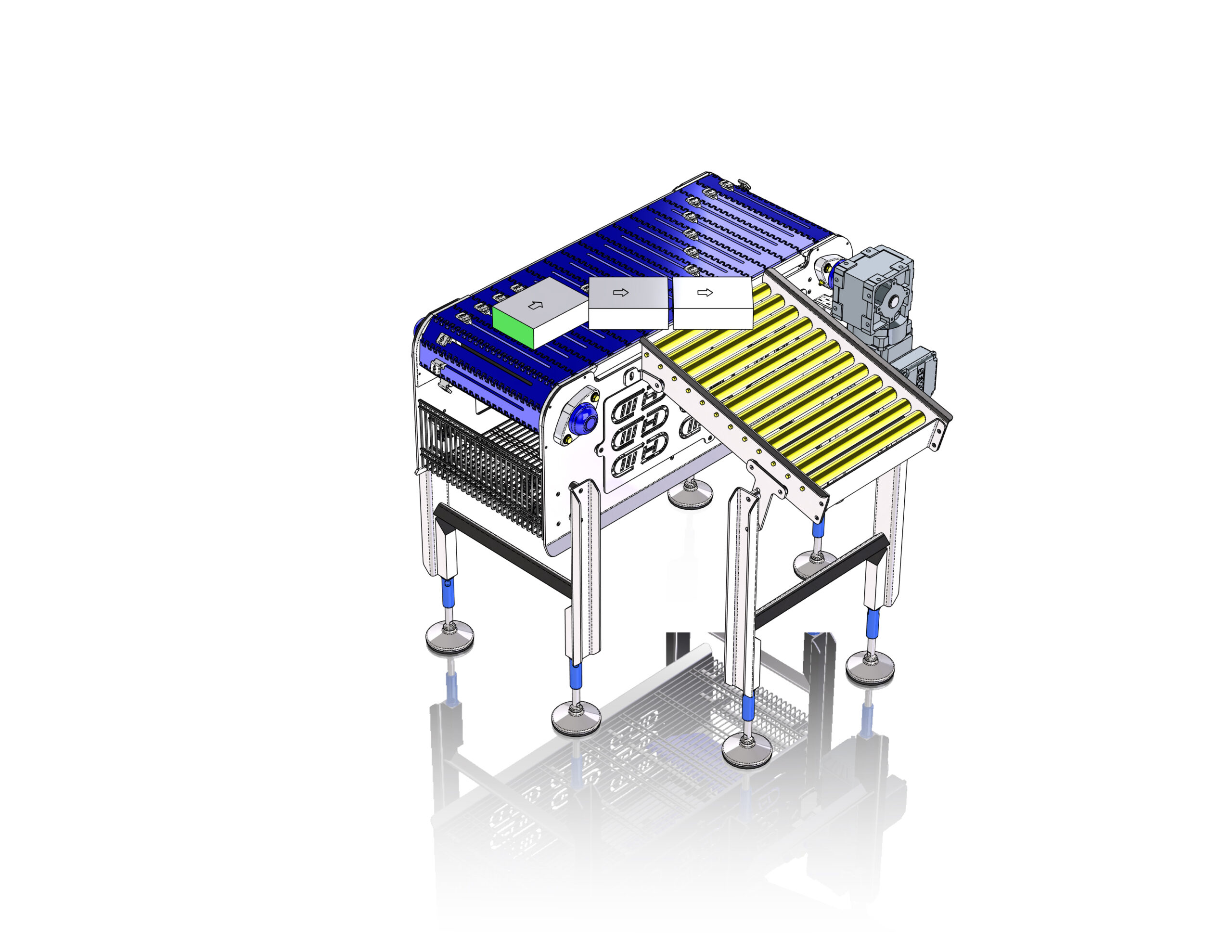 Il sistema Intralox Active Integrated Motion™ (AIM™) consente di realizzare sorter, switch 1 in 2 e unificatori 2 in 1 e 3 in 1, con una tecnologia innovativa che sposta i prodotti ingaggiandoli dal basso e quindi permettendo di gestire anche confezioni molto sottili che con i dispositivi tradizionali sarebbero soggetti a rischi di incastro. AIM consente di sostituire i tradizionali sistemi a placche, meccanicamente molto complessi e non ideali dal punto di vista della pulizia e della sanificazione, con una tecnologia che richiede meno componenti, in totale assenza di lubrificazione e con strutture molto più aperte e accessibili, usando nel contempo materiali compatibili al contatto diretto con gli alimenti.