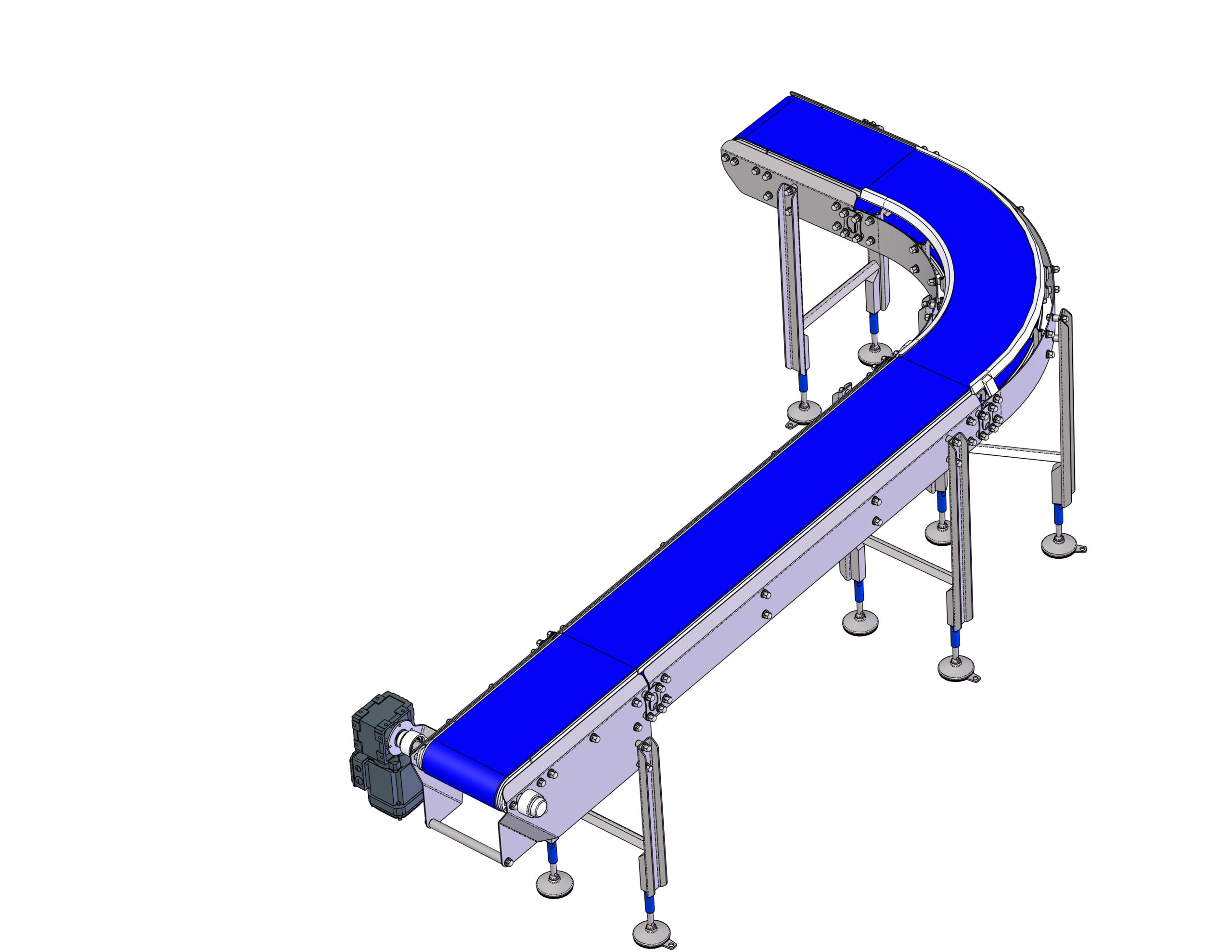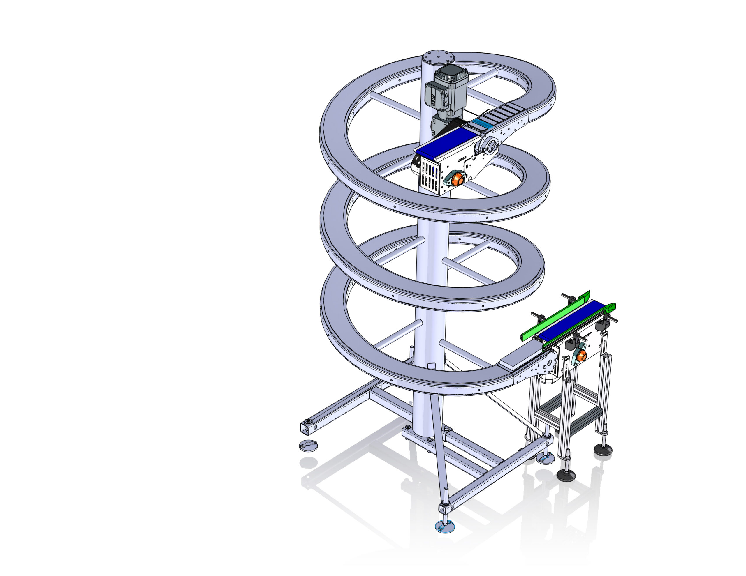 L’attenzione al benessere degli operatori di linea ci ha spinti a cercare una soluzione di sollevamento e discesa dei prodotti in uscita dal confezionamento primario. Grazie alla collaborazione con Ambaflex possiamo ora proporre la spirale leggera SVn-Bare: è una spirale a passo fisso con larghezze catena da 100 o 140 mm, particolarmente adatta a realizzare il tipo di passaggi e aperture di cui abbiamo parlato, mantenendo l’investimento a livelli estremamente competitivi. L’accordo raggiunto con la nota azienda Olandese, ci consente di applicare personalizzazioni su guide laterali, passaggi di testa e motorizzazione; speriamo in questo modo di rendere economicamente accessibili anche ad aziende più piccole e con inferiori capacità di spesa, soluzioni di layout che erano a disposizione di poche ricche aziende, senza per questo rinunciare a prodotti di qualità e capacità operative elevate.