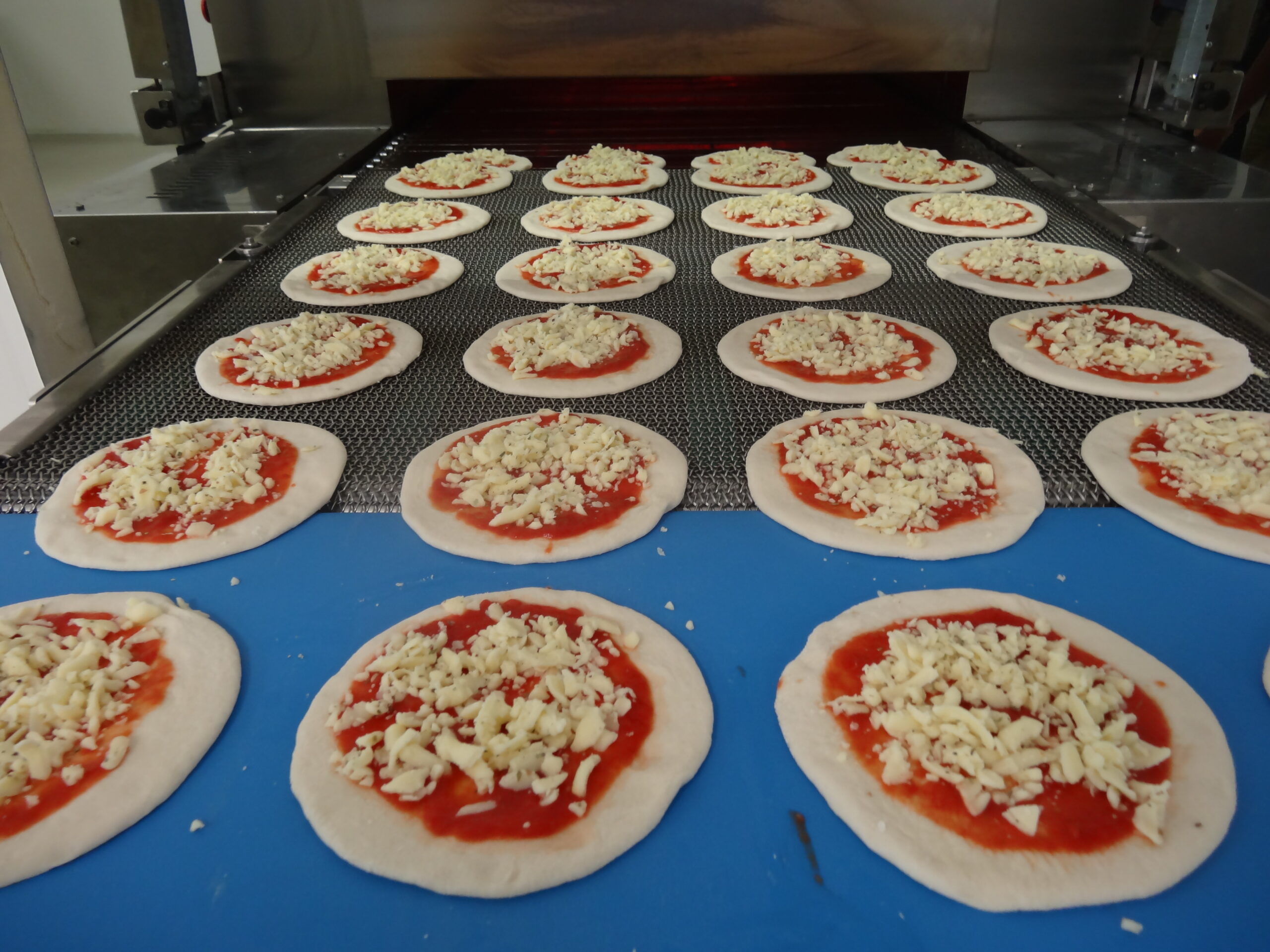Le linee automatiche di laminazione, formatura e/o farcitura pizza, per esempio, sono composte da estrusore, multirullo, laminatore trasversale, calibratore, banco di taglio, formaggiatore e/o dosatore per pomodoro e integliamento automatico o carico spirale di surgelazione/forno. Con le linee automatiche è possibile produrre pizze rotonde, ovali, quadrate, rettangolari e prodotti speciali.