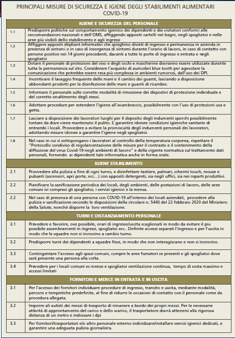 A partire dal 14 marzo le aziende alimentari hanno adottato il “Protocollo condiviso di regolamentazione delle misure per il contrasto e il contenimento della diffusione del virus Covid-19 negli ambienti di lavoro”, volto a garantire la salubrità dell’ambiente di lavoro, al quale si sono aggiunte le linee guida per la sicurezza delle aziende alimentari dell’OMS emanate il 7 aprile.
