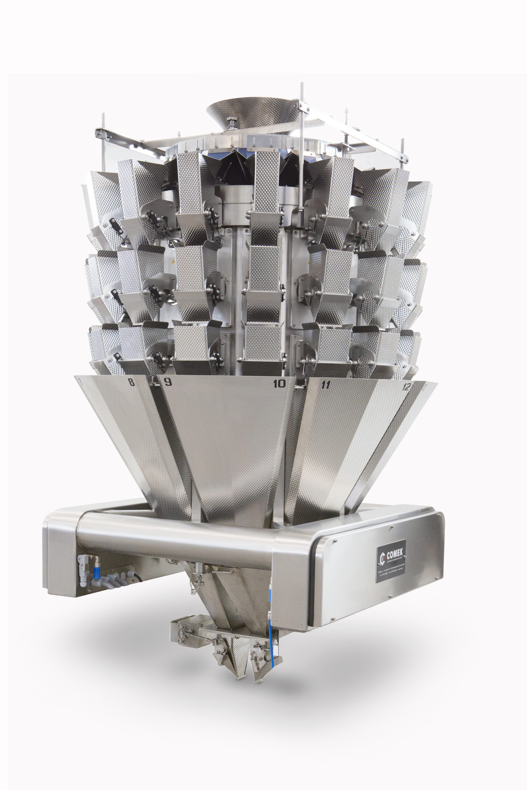 Pesatrice multitesta Comek, abbinabile alla linea di confezionamento per arachidi.