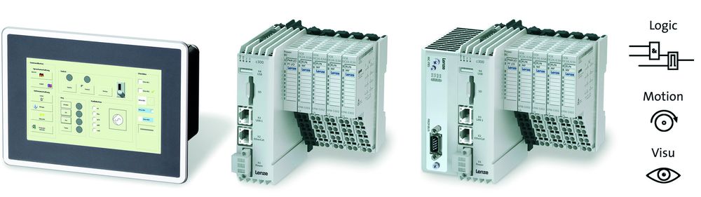 Con i modelli c300 e p300 Lenze lancia sul mercato due nuovi motion controller, integrando con la fascia base la gamma di potenza già disponibile. Il controllore c300 offre tutto ciò che occorre per una rapida realizzazione di applicazioni motion, senza complicazioni. I fieldbus EtherCat e CanOpen sono integrati nel controllore in modo da renderlo il più compatto della categoria mentre gli I/O possono essere affiancati al c300 perché entrambi dotati di bus “backplane”. Il panel controller p300 è ideale per soluzioni di controllo e visualizzazione di livello medio-semplice; un potente processore ad alta efficienza energetica ARM Cortex A8 con una frequenza di clock di 800 MHz provvede a fornire la potenza di calcolo adeguata. Caratterizzati da una facile gestione, questi motion controller – che non necessitano di manutenzione – permettono di eseguire la messa in servizio rapida di applicazioni ripetitive e il backup dei dati in modo estremamente semplice, tramite chiavetta USB. Anche la sostituzione dei dispositivi è particolarmente veloce, grazie all’utilizzo di una scheda di memoria SD intercambiabile.