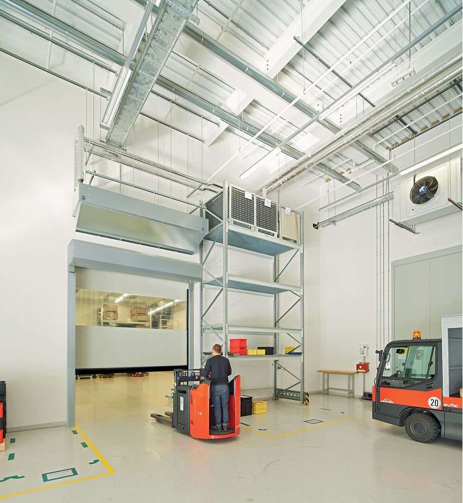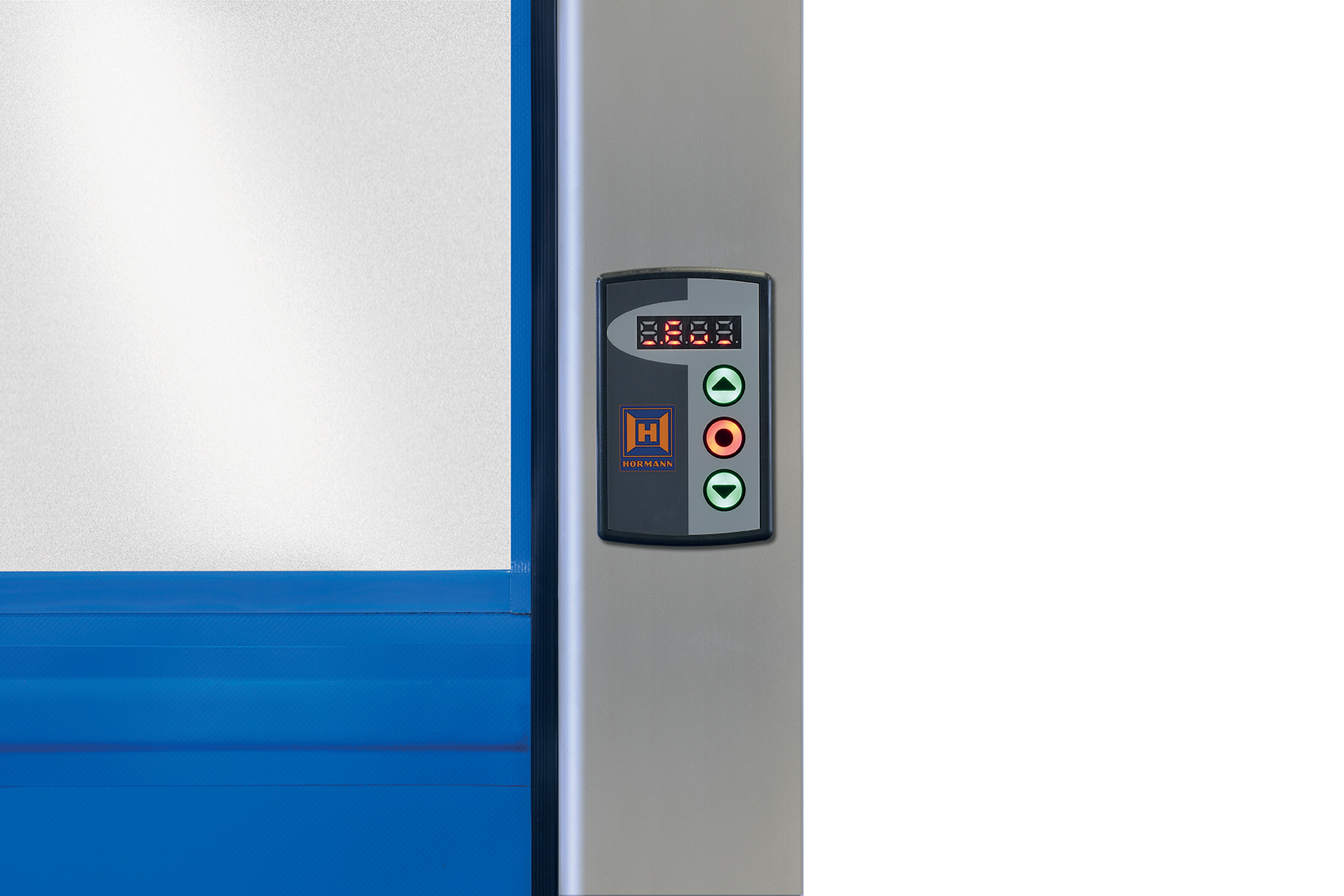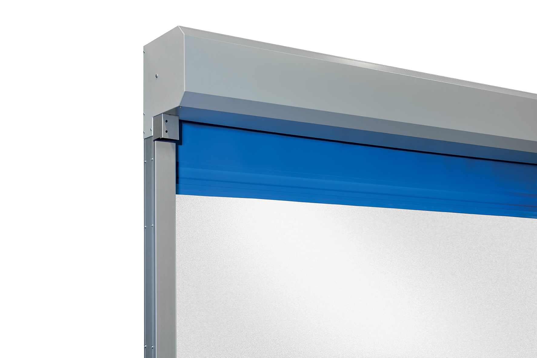 Il nuovo portone a scorrimento rapido per spazi ridotti V 4015 SEL Alu R Hörmann è particolarmente indicato per supermercati e capannoni logistici dove di frequente i corselli tra le scaffalature portapallet disposte fino al vano murario non consentono l’impiego di una chiusura con riduttori sporgenti lateralmente.